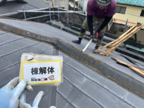 熊本市北区M様邸屋根工事 既存の棟板金を解体し、軒先水切り板金を取り付けました