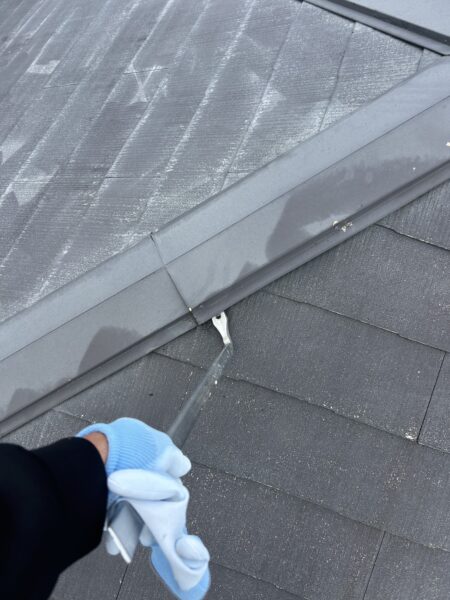 サビの発生や雨漏りを防ぐため、谷板金も塗り替えをおこなっています。