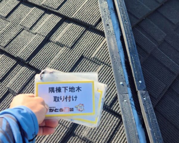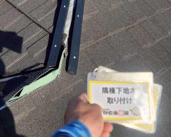 貫板を取り付け、その上に棟板金を設置します。