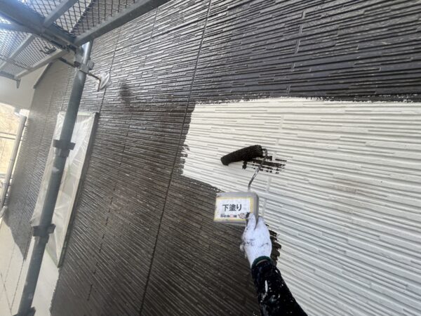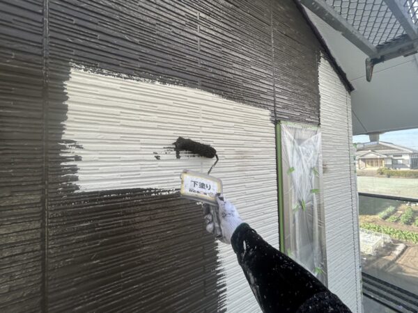 外壁の下塗りの様子です。
