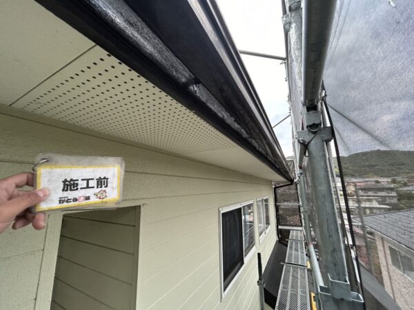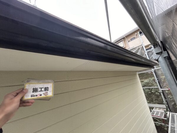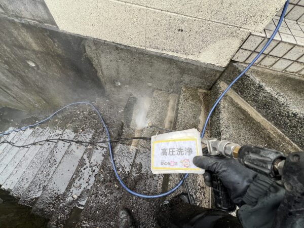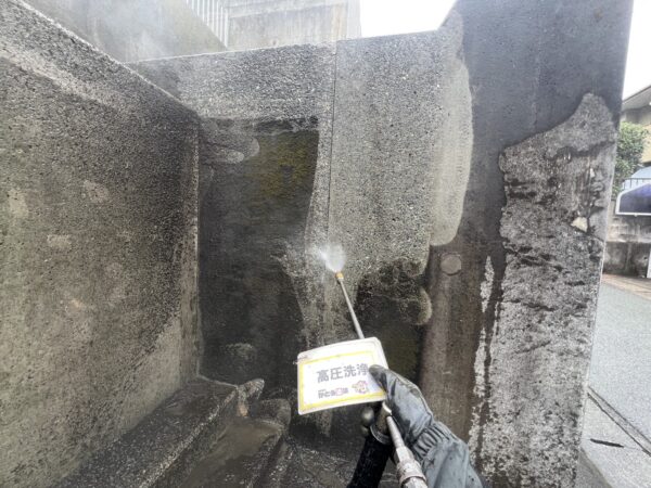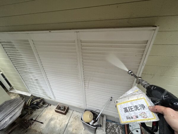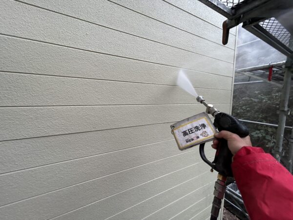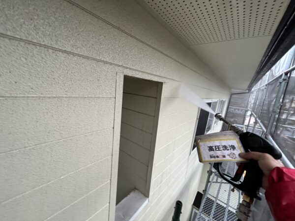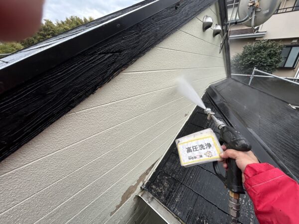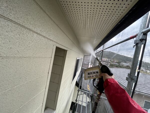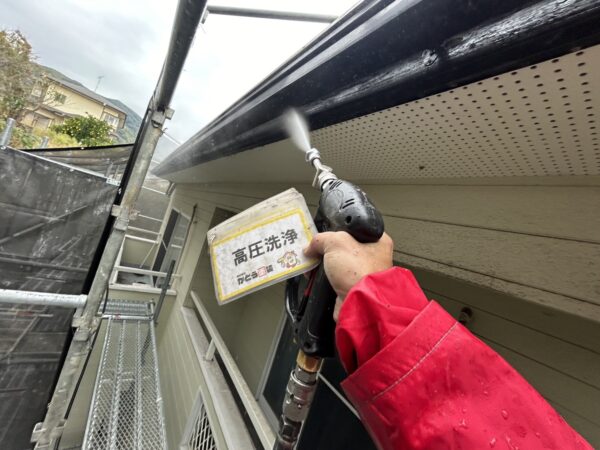 外壁、軒天の高圧洗浄の様子です。