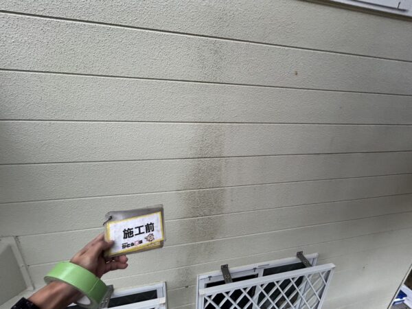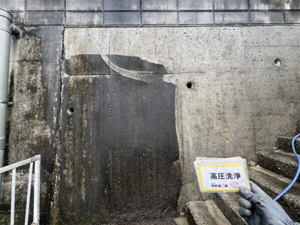 熊本市西区K様邸外壁塗装 築30年のお住まいで、塗装前に洗浄をおこない汚れやコケや藻を綺麗に洗い流しました
