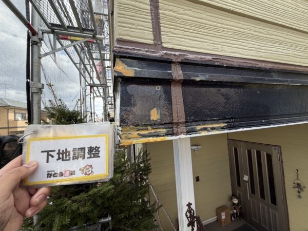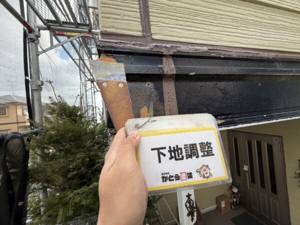 剥がれている箇所の下地調整をおこないます。