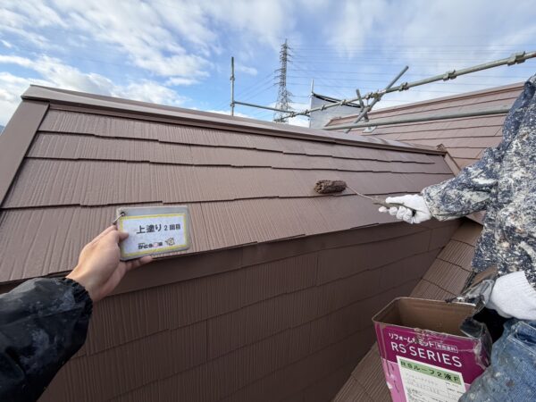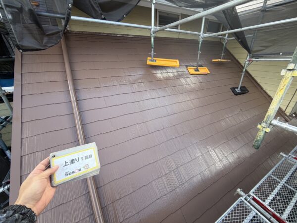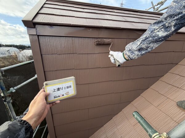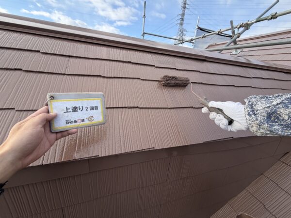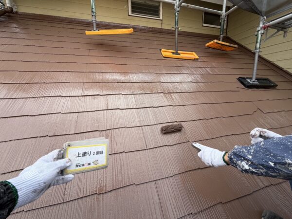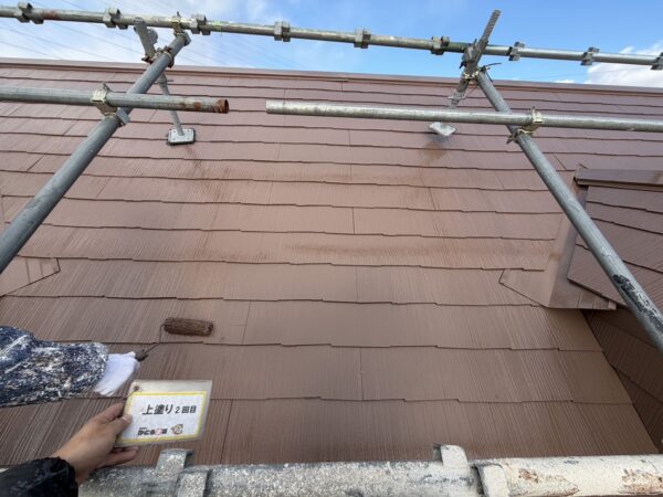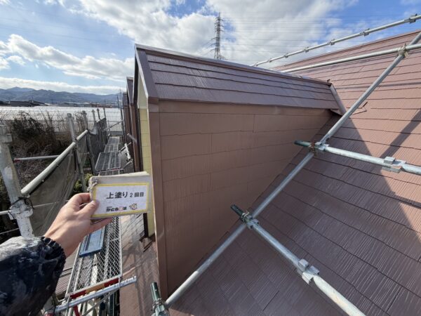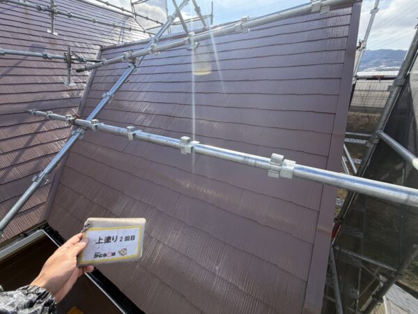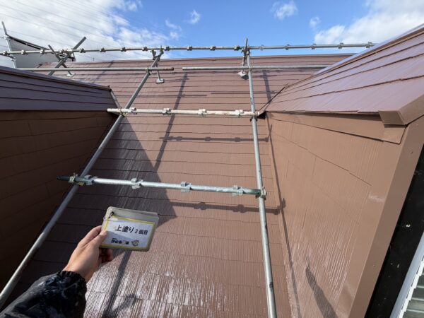 屋根の上塗り2回目の様子です。
