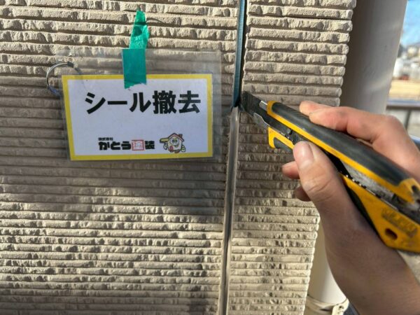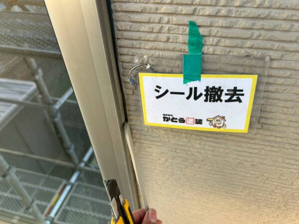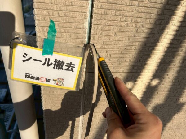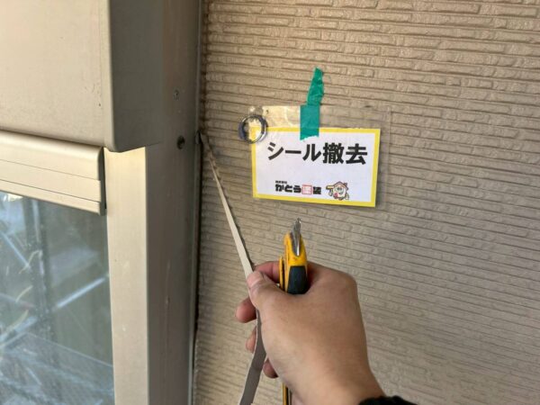カッターを使い慎重に既存のシーリング材を取り除いていきます。