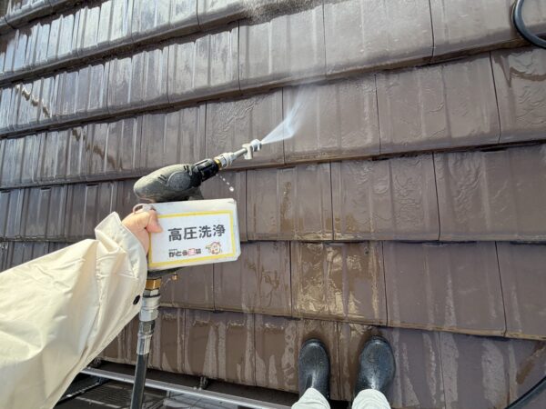 今回屋根は塗装しませんが、この機会ですので洗浄をしておきます。