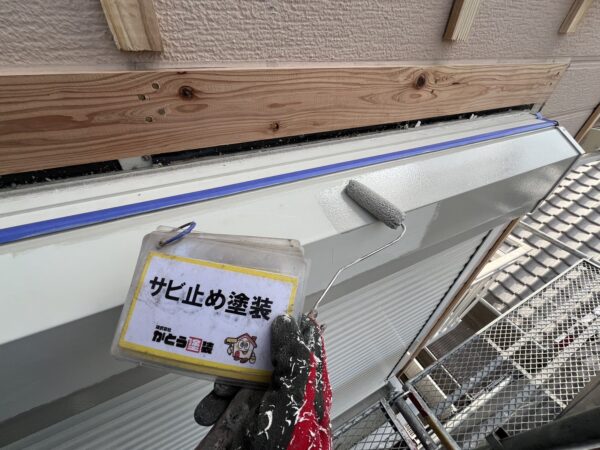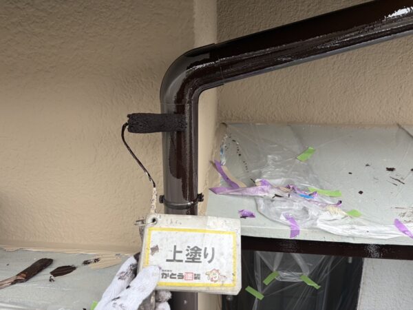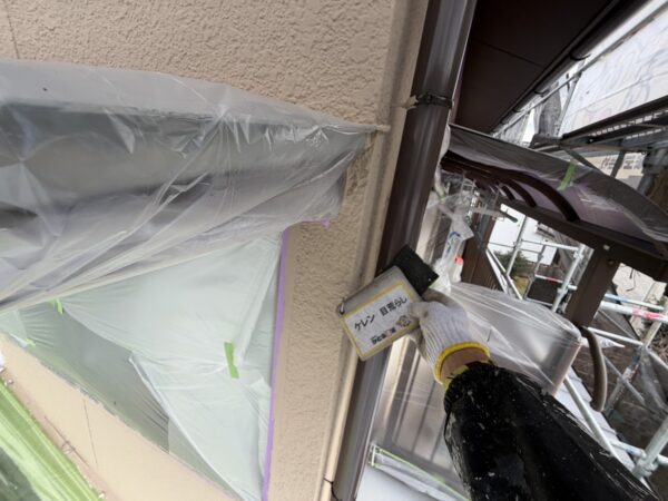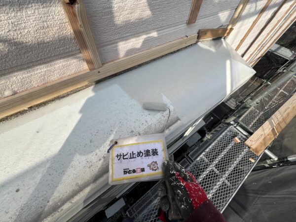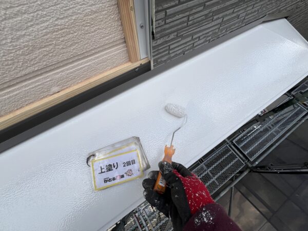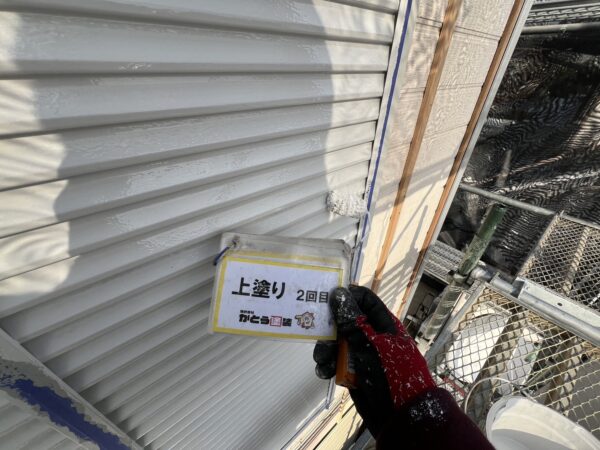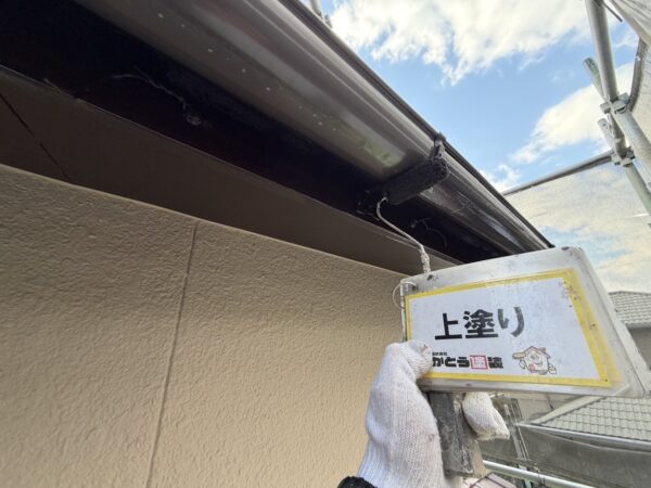 外壁張り替えで作業を進めている住宅の付帯部塗装をおこないます。