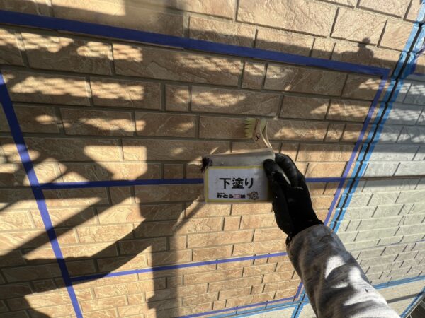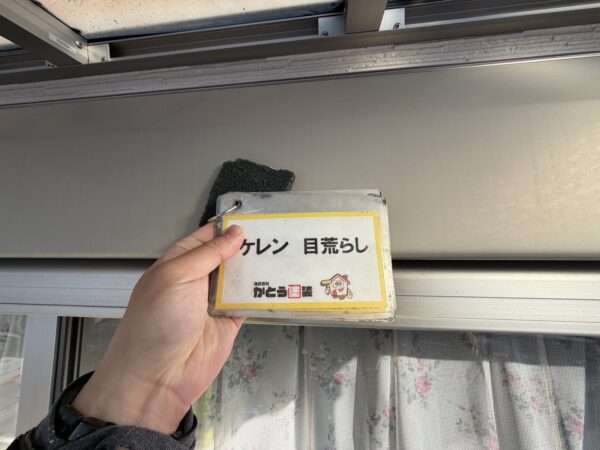 シャッターボックス、水切りのサビ止め塗装の様子です。