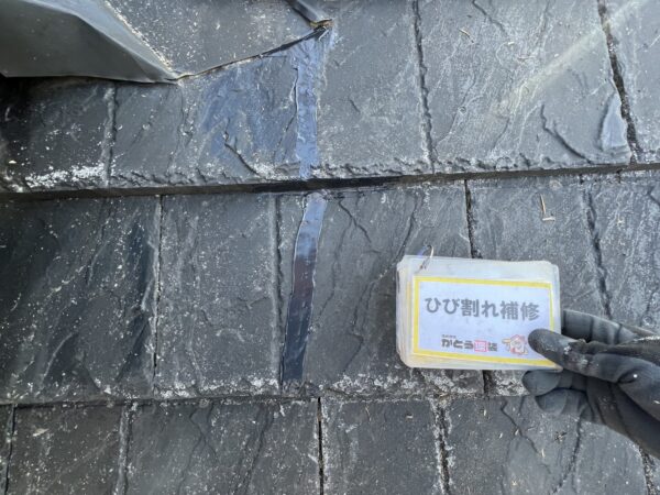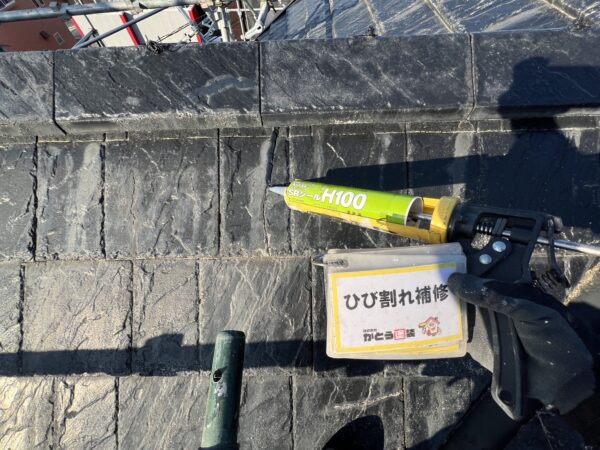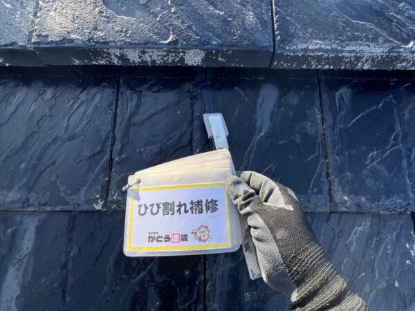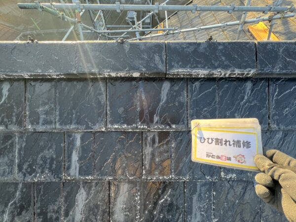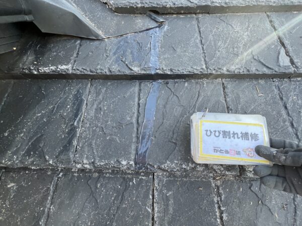 屋根にはひび割れが多数ありましたので、すべて補修しています。