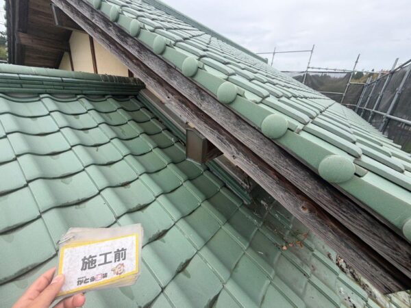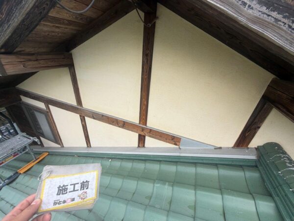 破風板も塗装いたします、経年による劣化が見られます