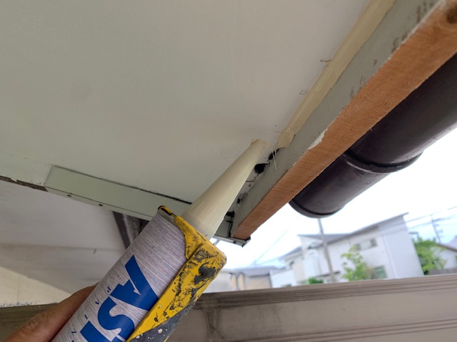 軒天も劣化していて隙間が空いている箇所に関してはコーキングで対応させてもらいました。