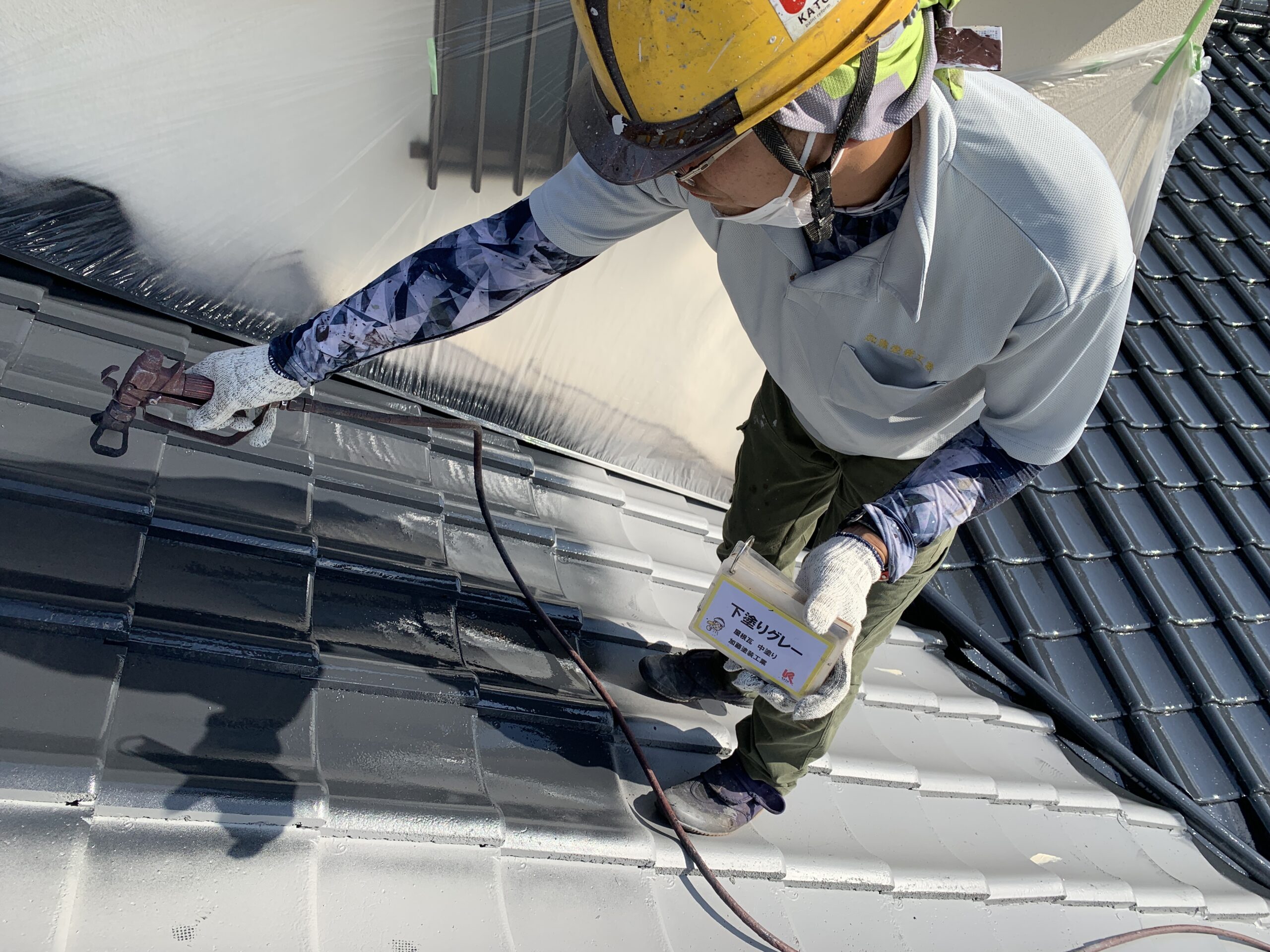 屋根瓦塗装 中塗り