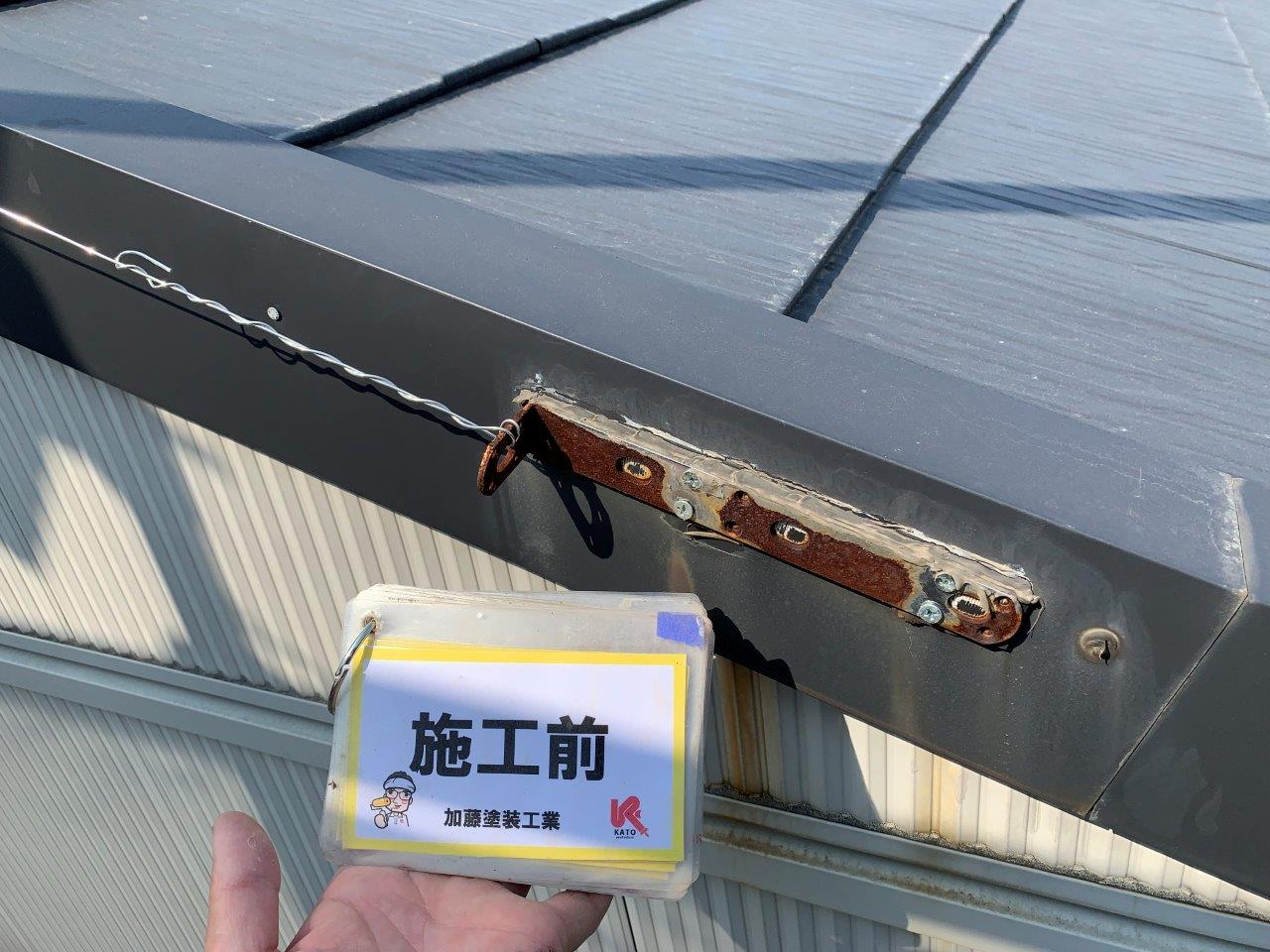 アンテナの取り付け金具からサビが発生しています。錆がフッ素鋼板にうつるまえに塗装されてよかったです。この金具はよくないので撤去します。なぜなら塗装しても素材自体が錆てしまうので将来的によくないからです。