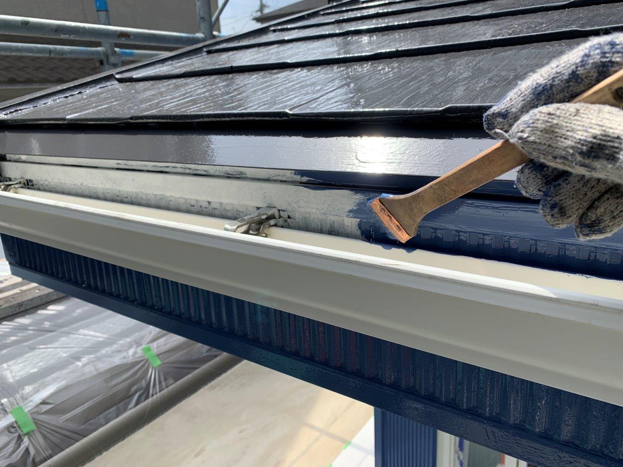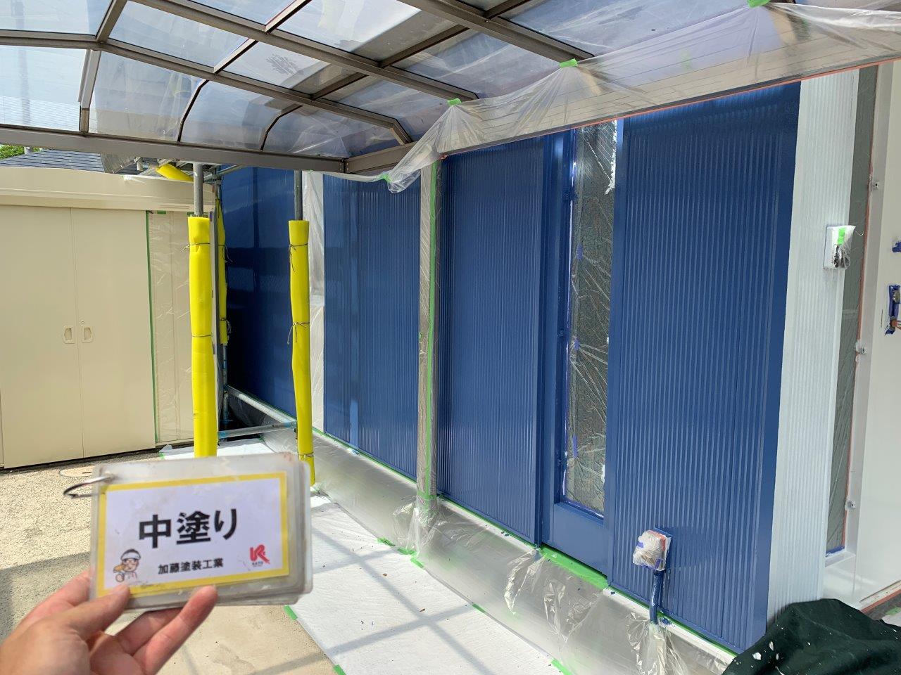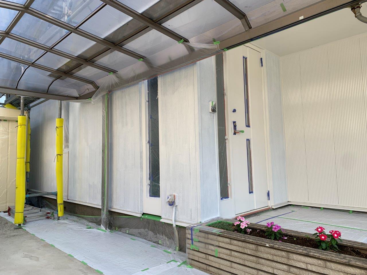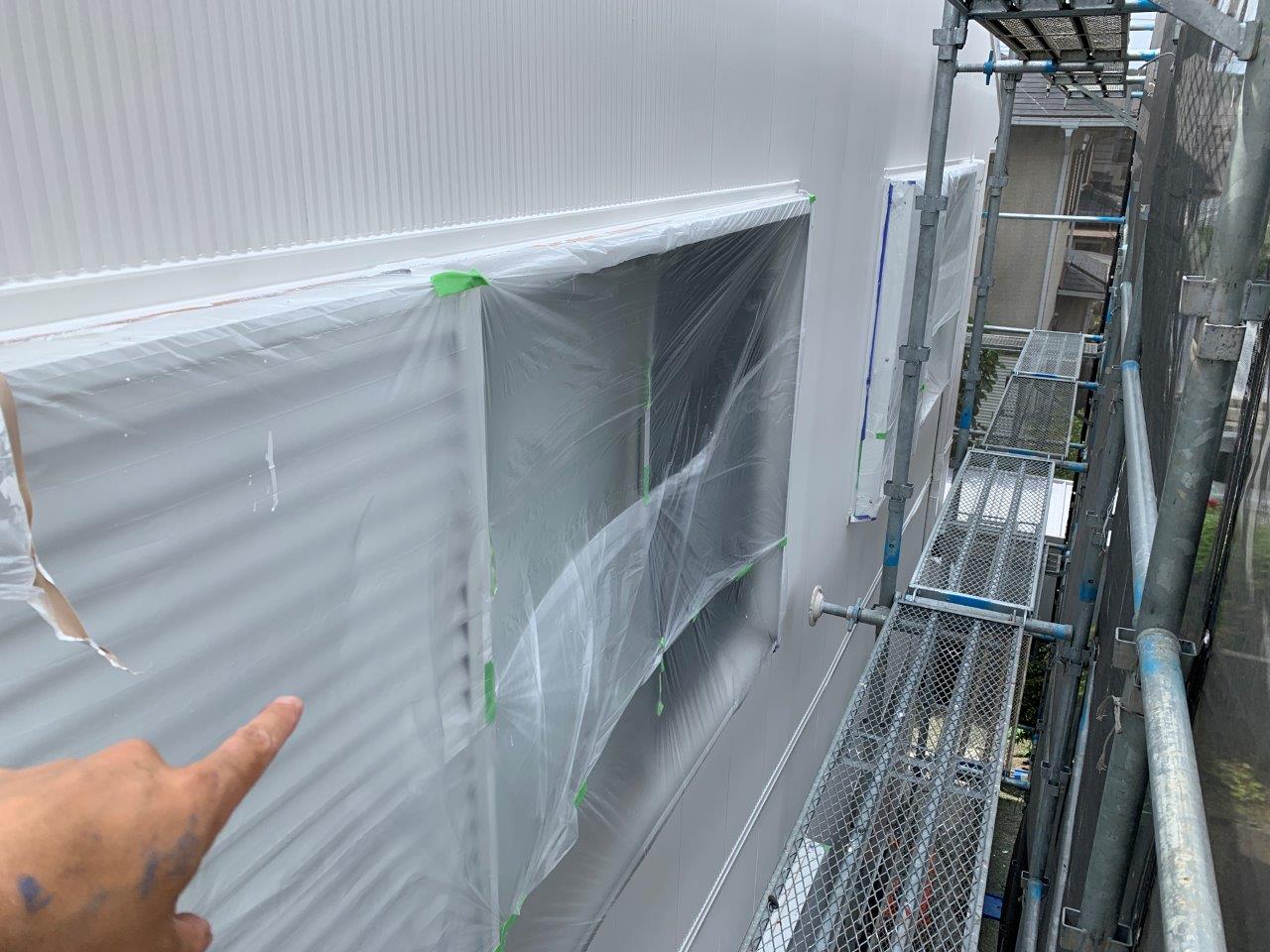 外壁の色分けで塗装していきます。養生してからせこうしました。