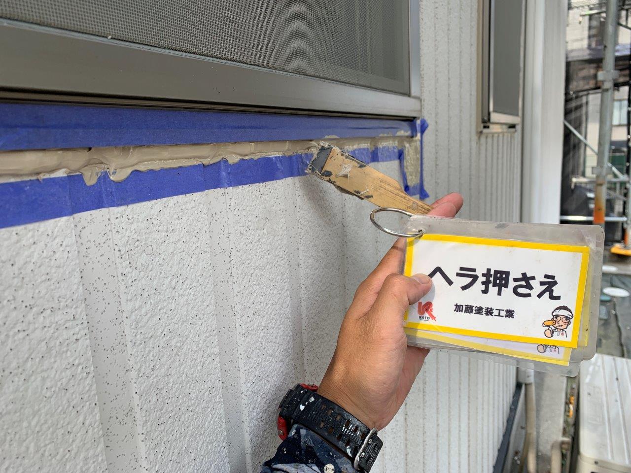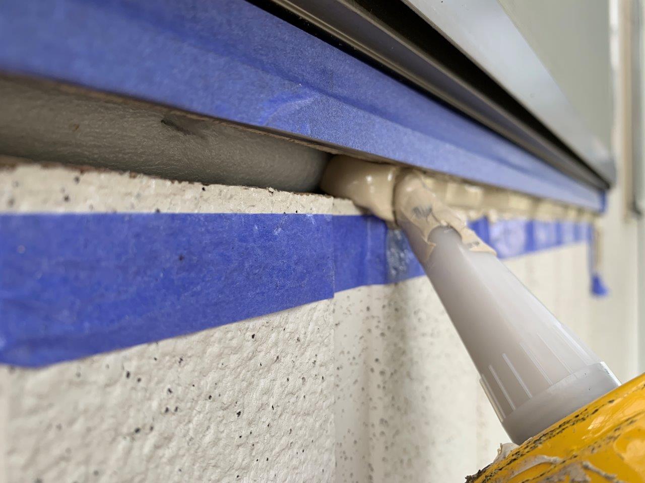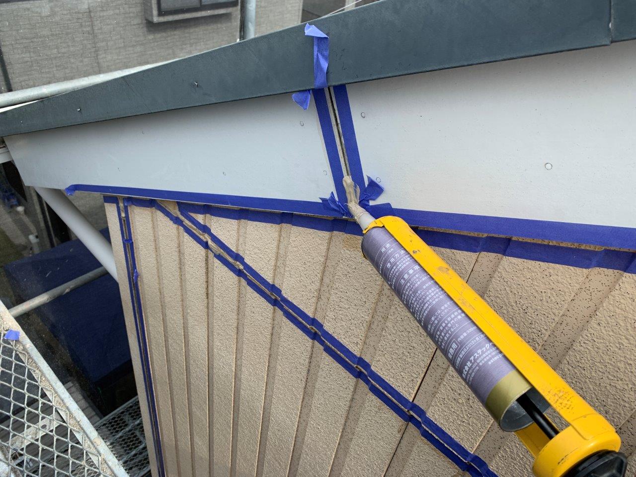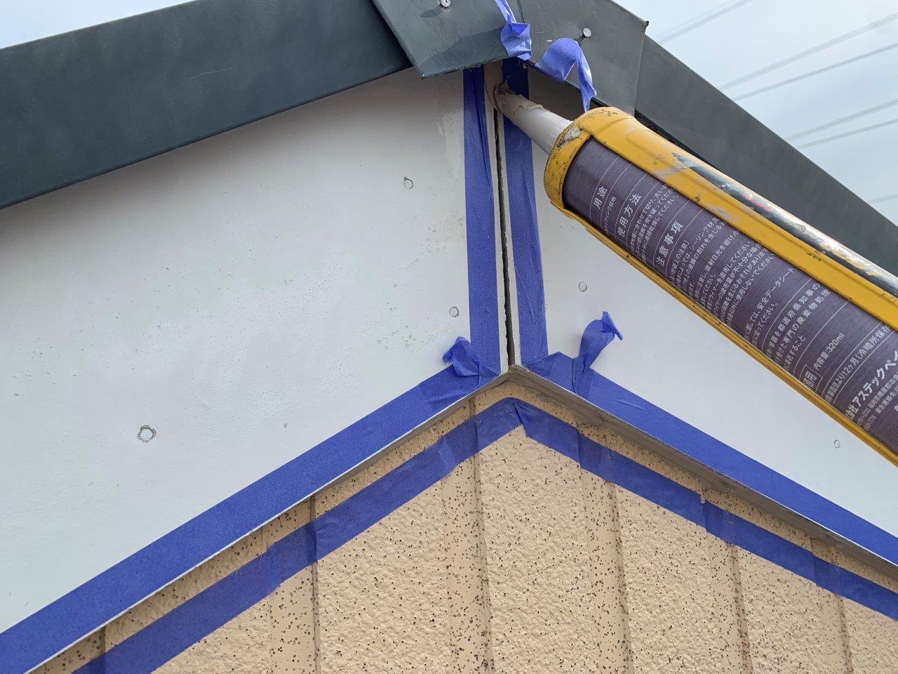 破風、鼻隠し、帯などのいたんでいる箇所に関してはシーリングを打ち替えをおこなってから塗装に入ります。