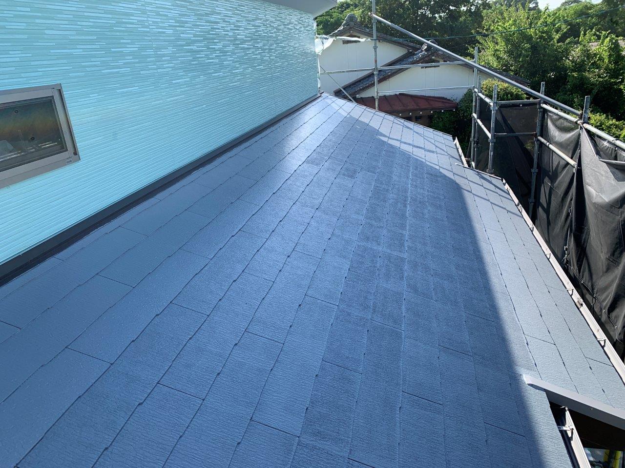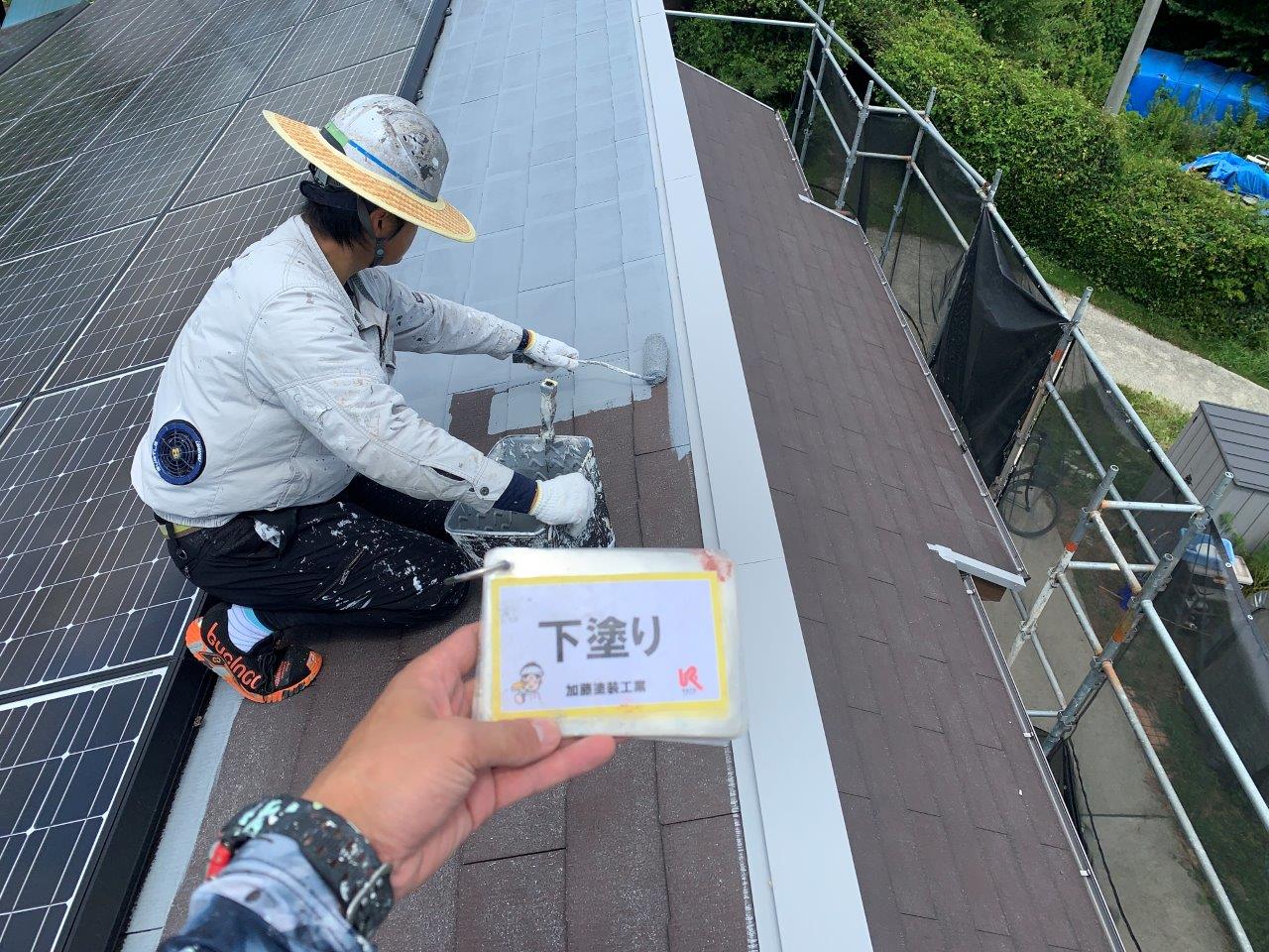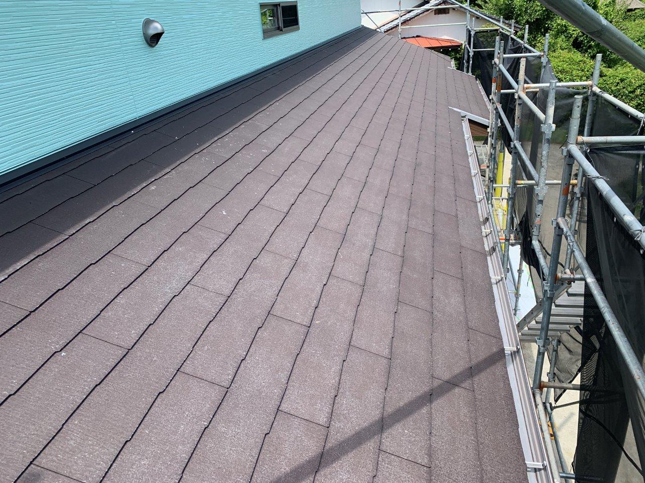 ここが他社さんと違うポイントになります。初めてのスレート屋根の塗替え工事では当社では下塗りは2回塗りです。