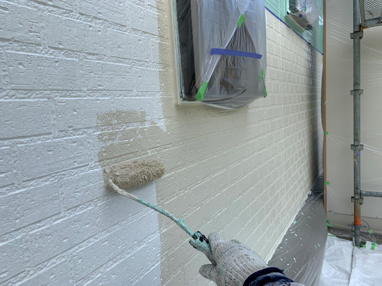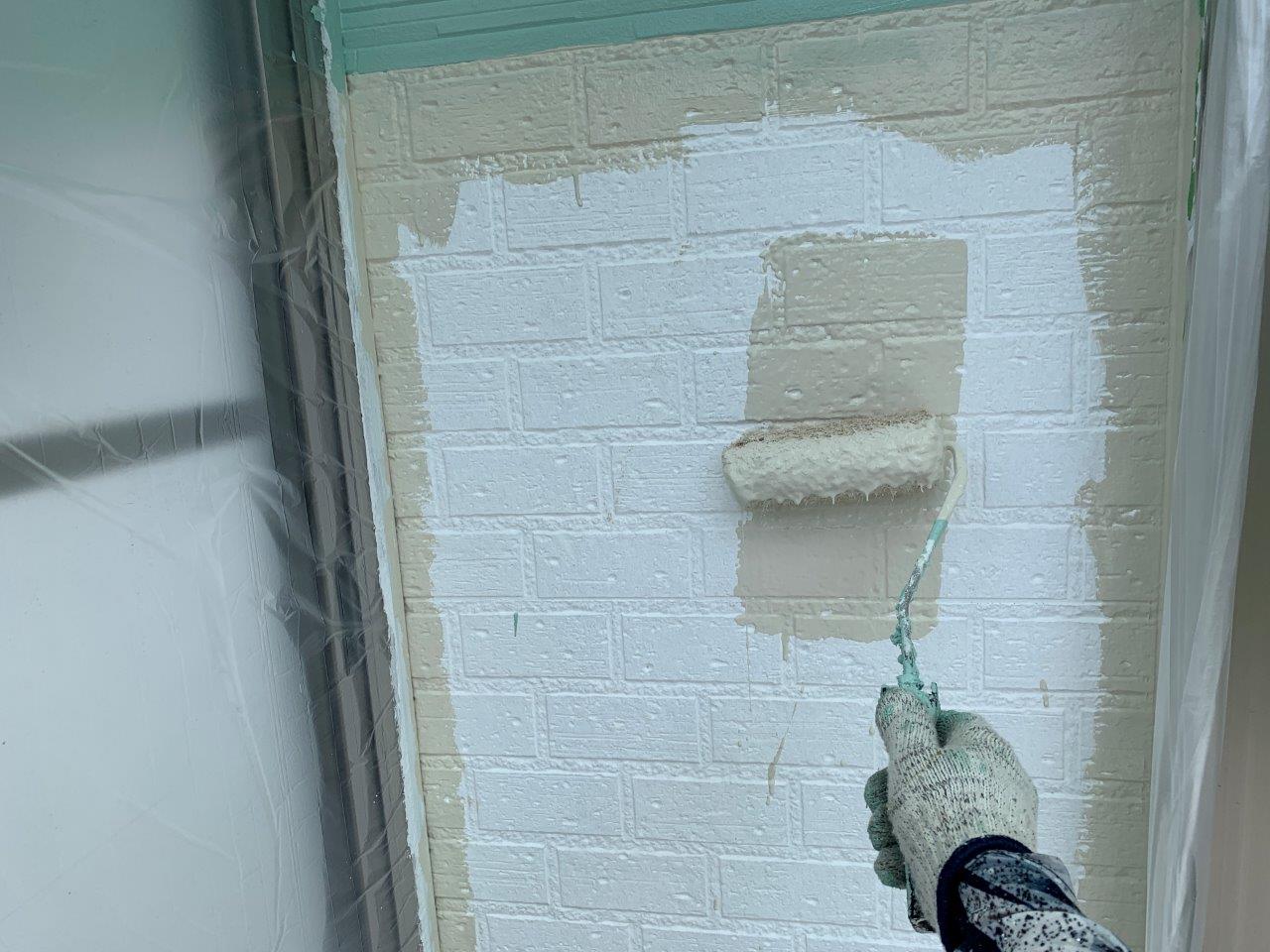 サイディングボードの凹凸が思いのほか深いのでローラーは長毛を使用しています。