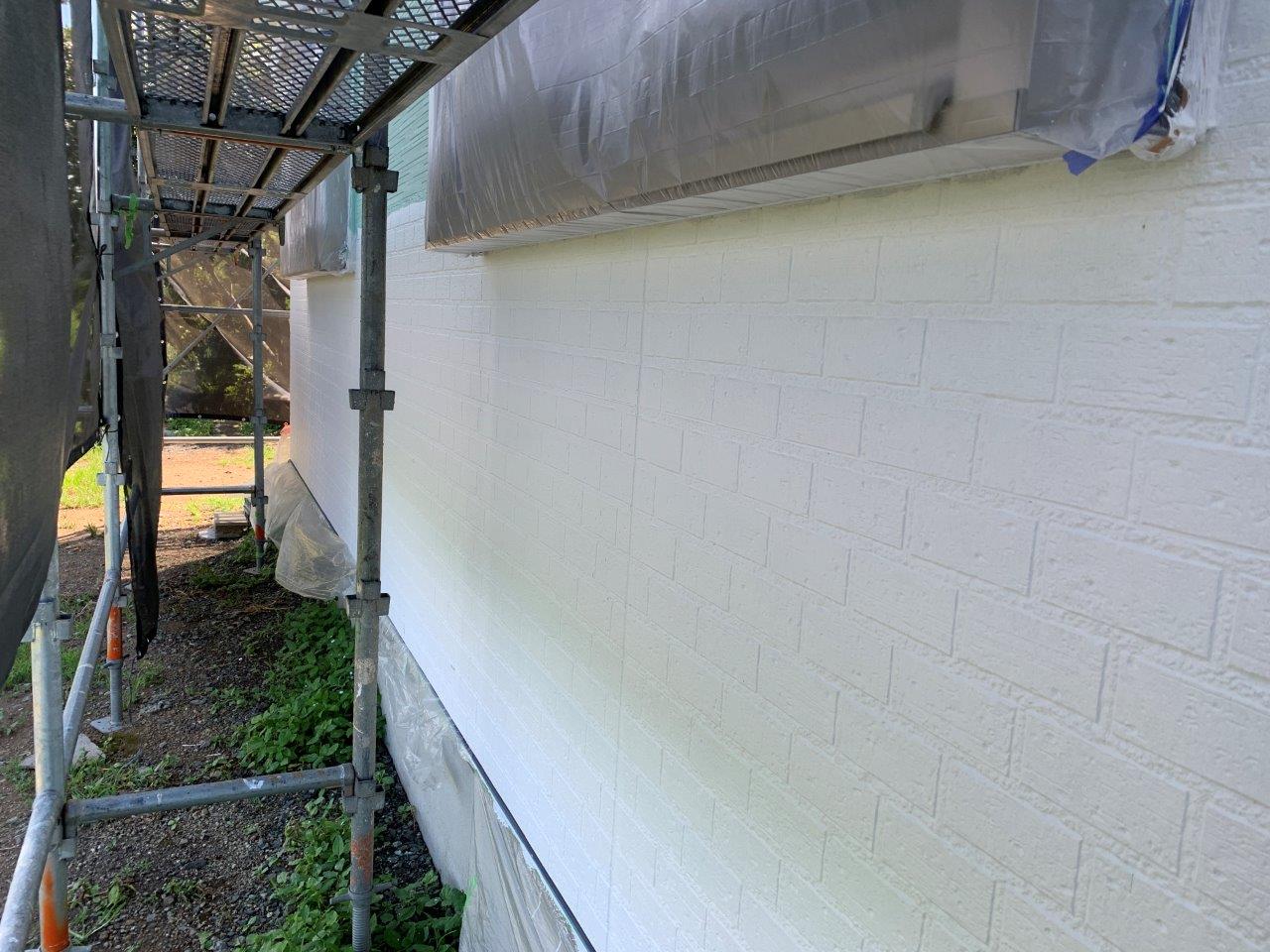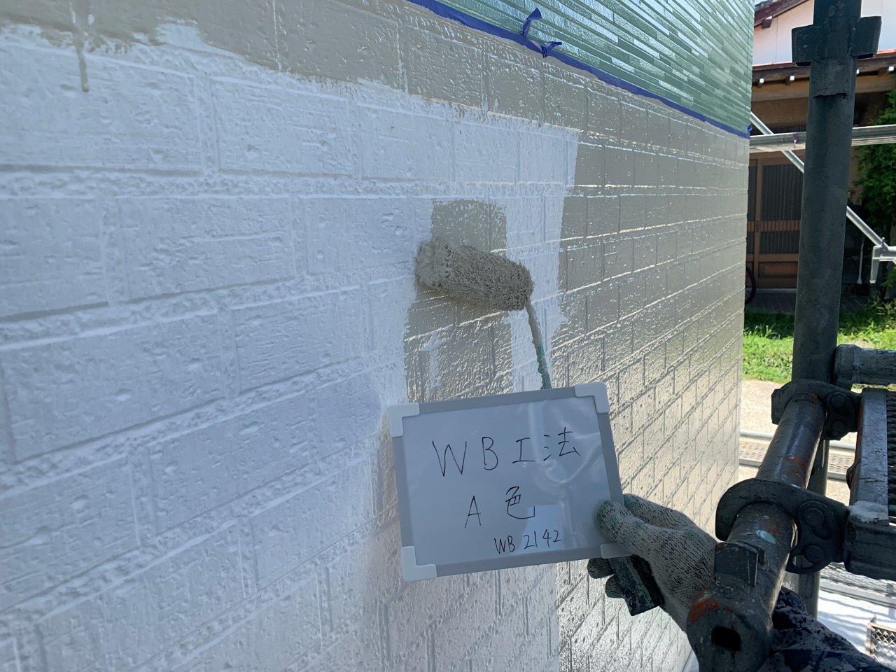 気温35度 サーモテックシーラーを塗装しています。なんとこの下塗り材にも遮熱性能が組み込まれています。