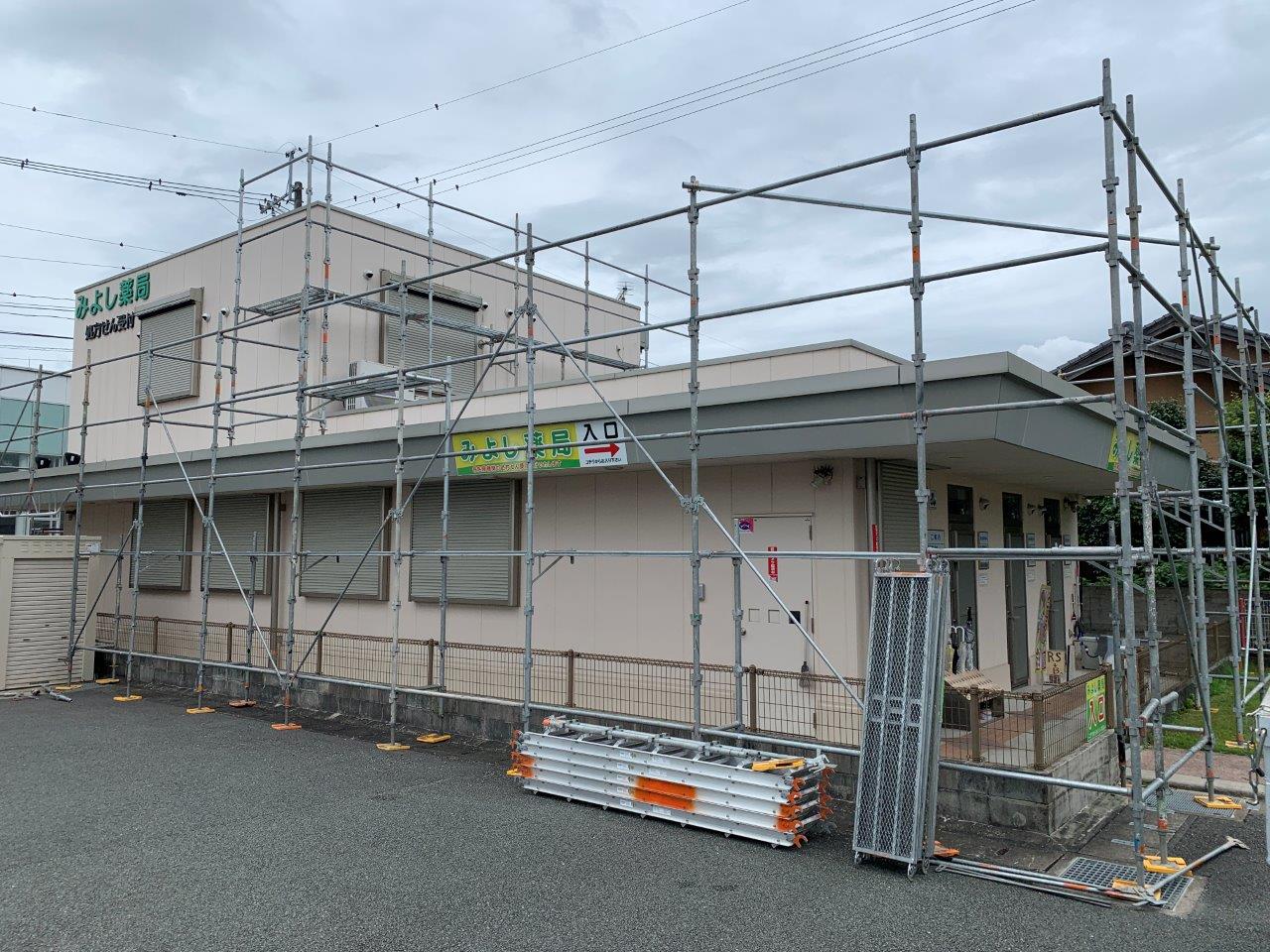 M様邸軒天 天井塗装 みよし薬局様足場組立