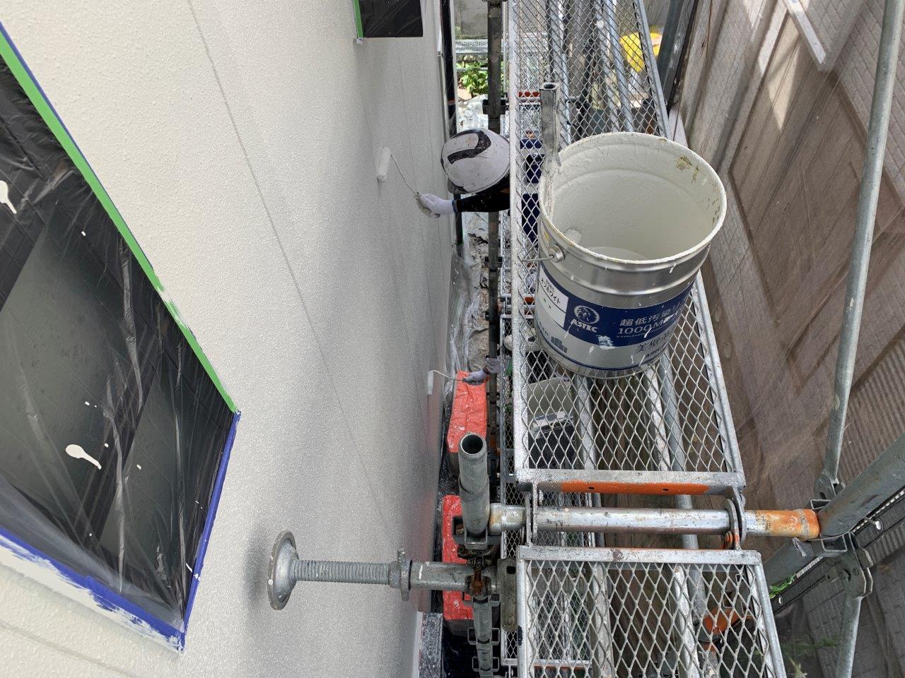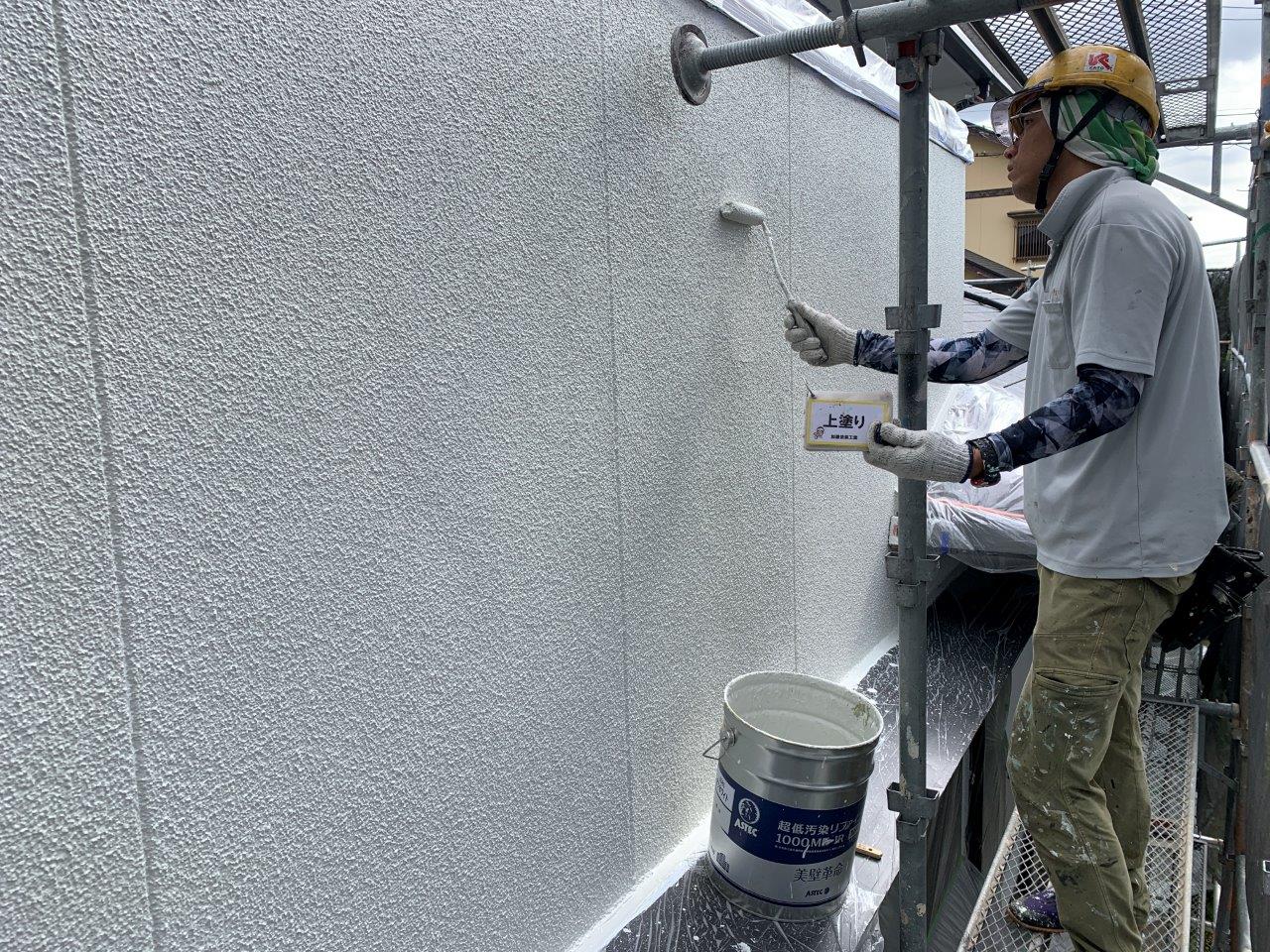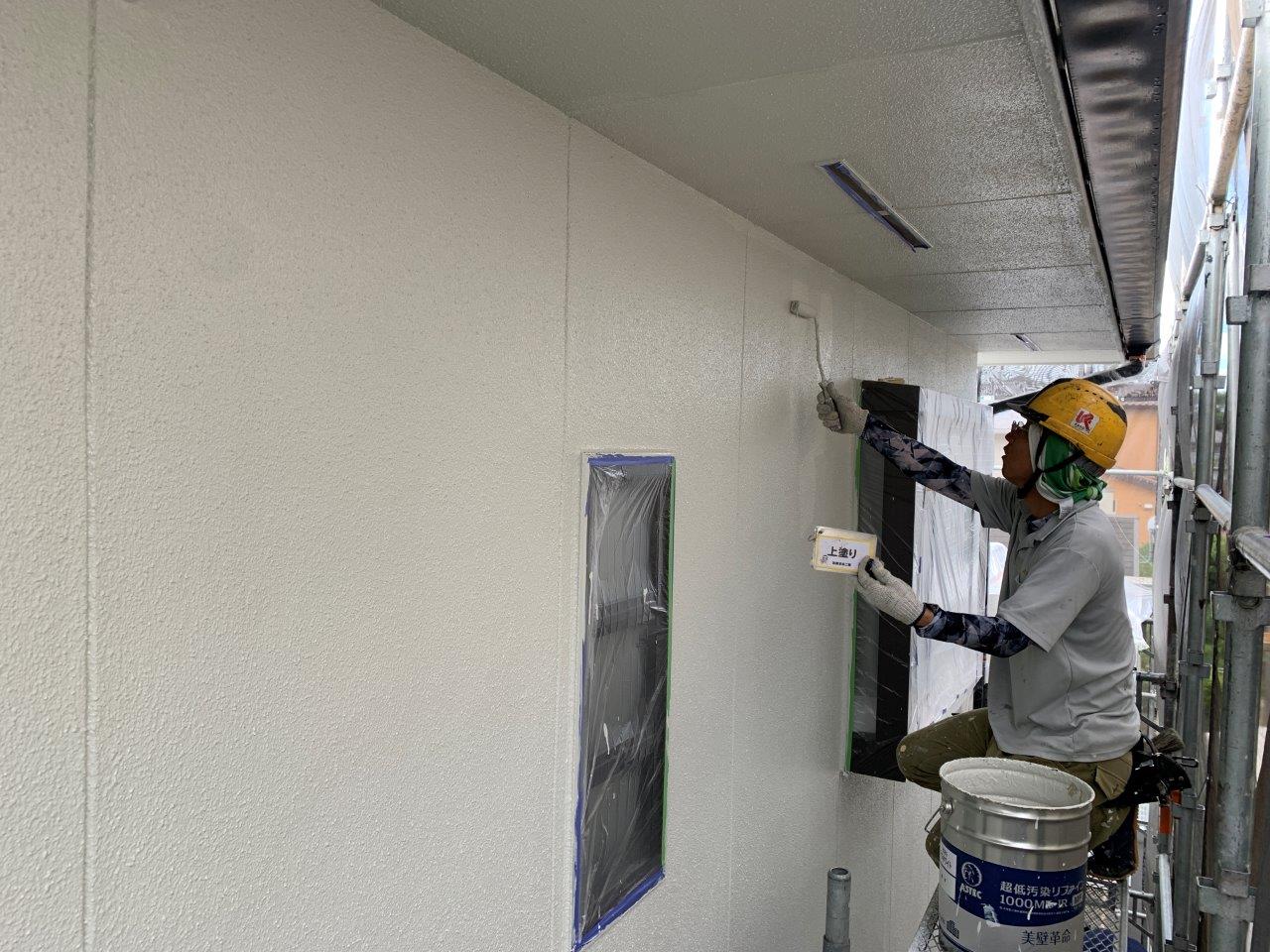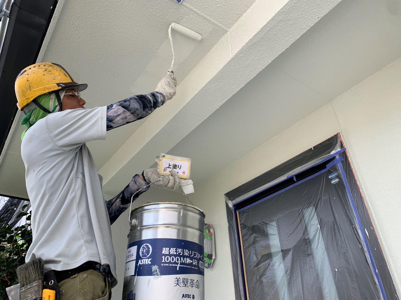 熊本市外壁塗装 超低汚染リファイン アステックペイント 上塗り状況です。