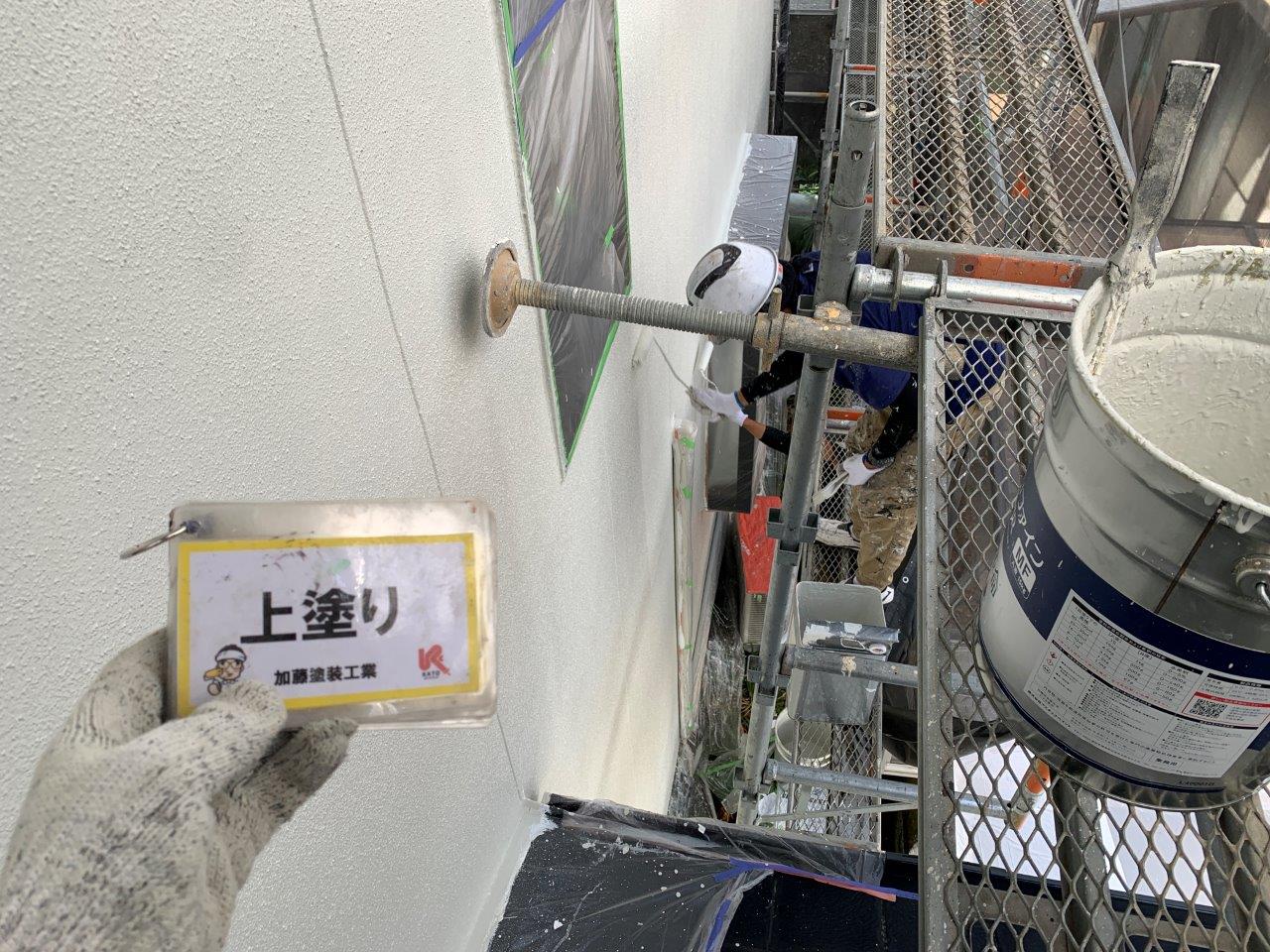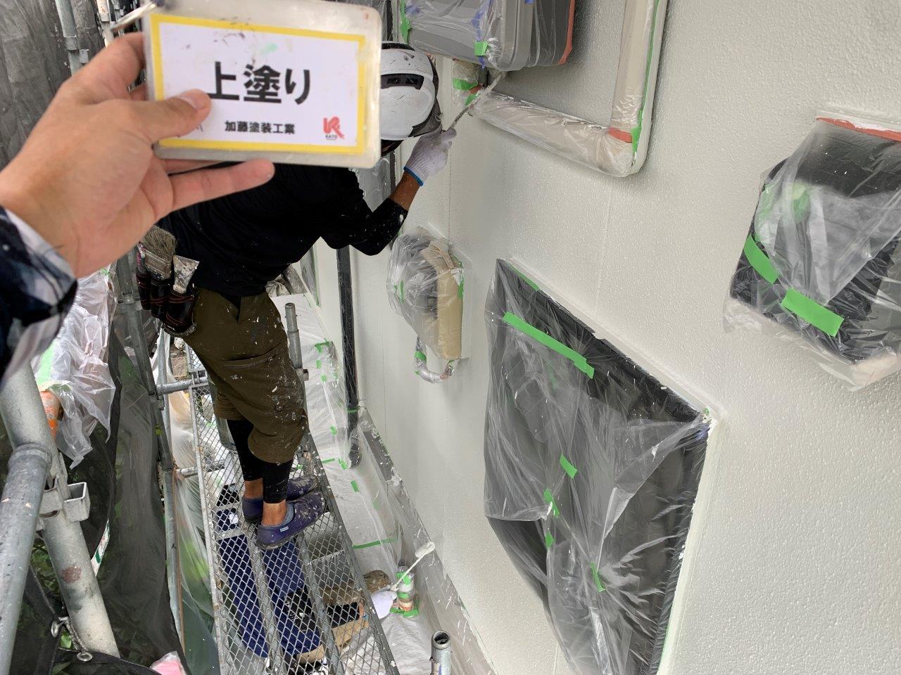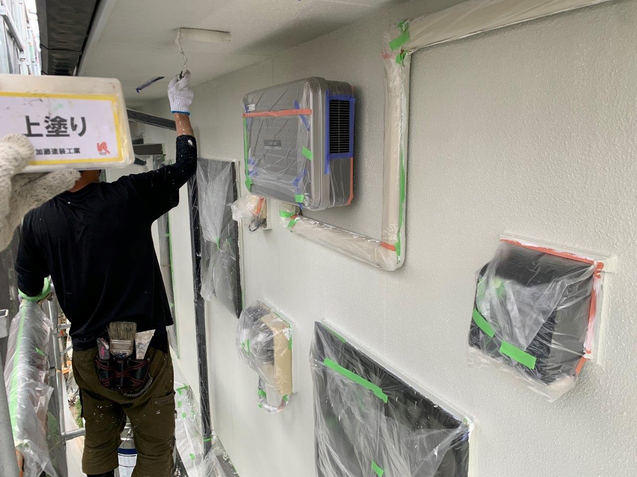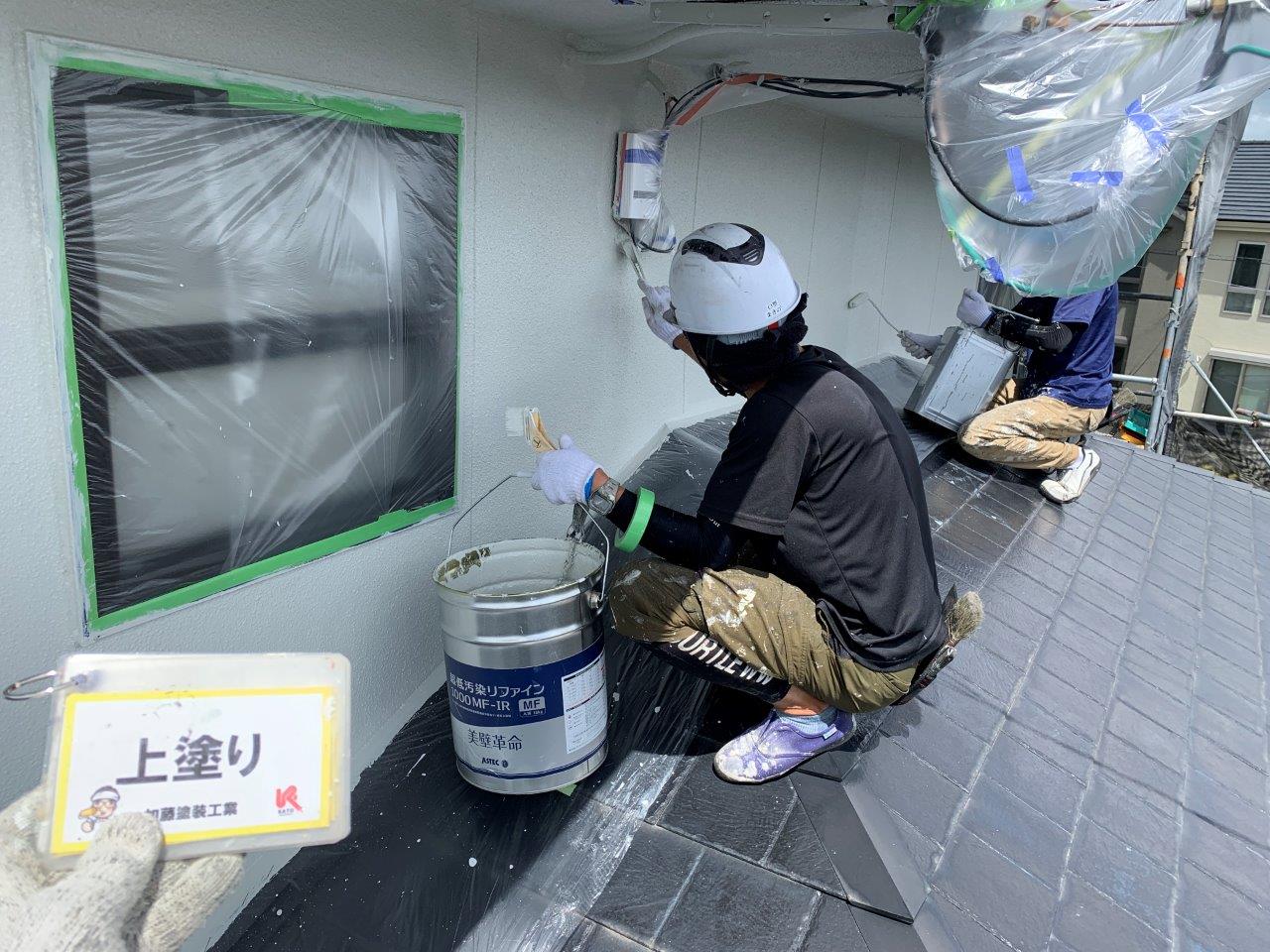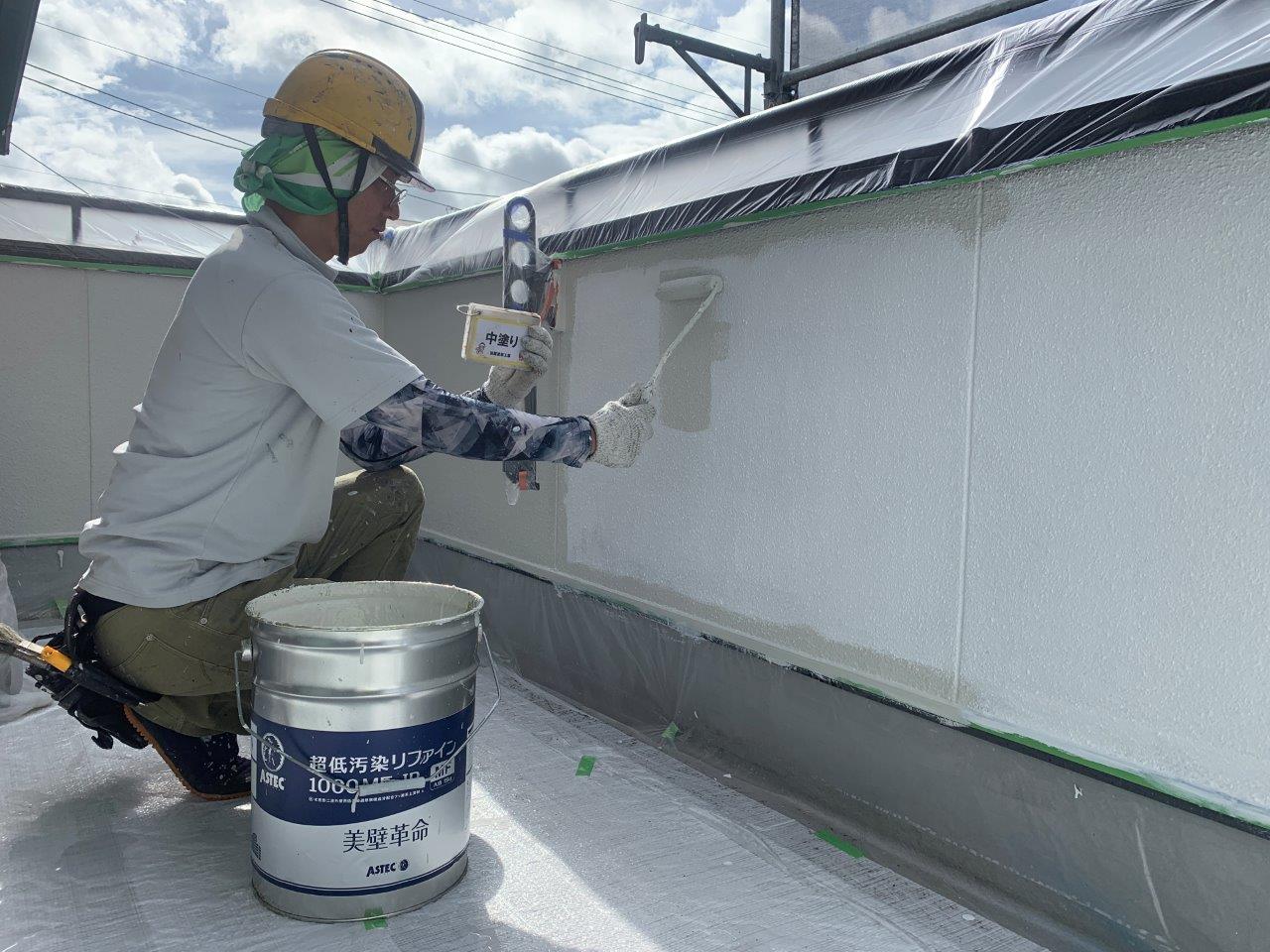 熊本市外壁塗装 超低汚染リファイン アステックペイント 上塗り状況です。