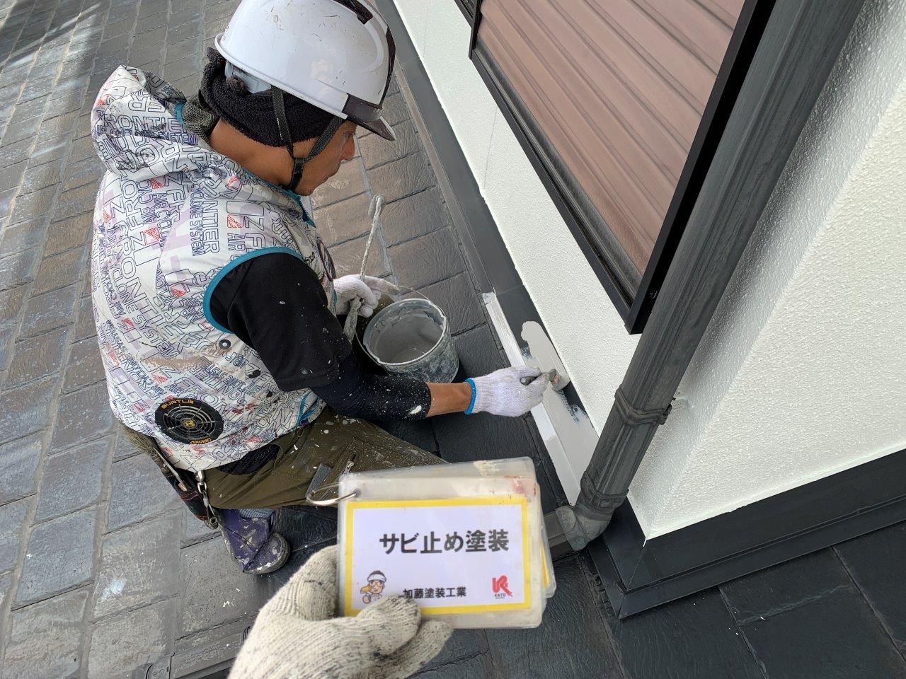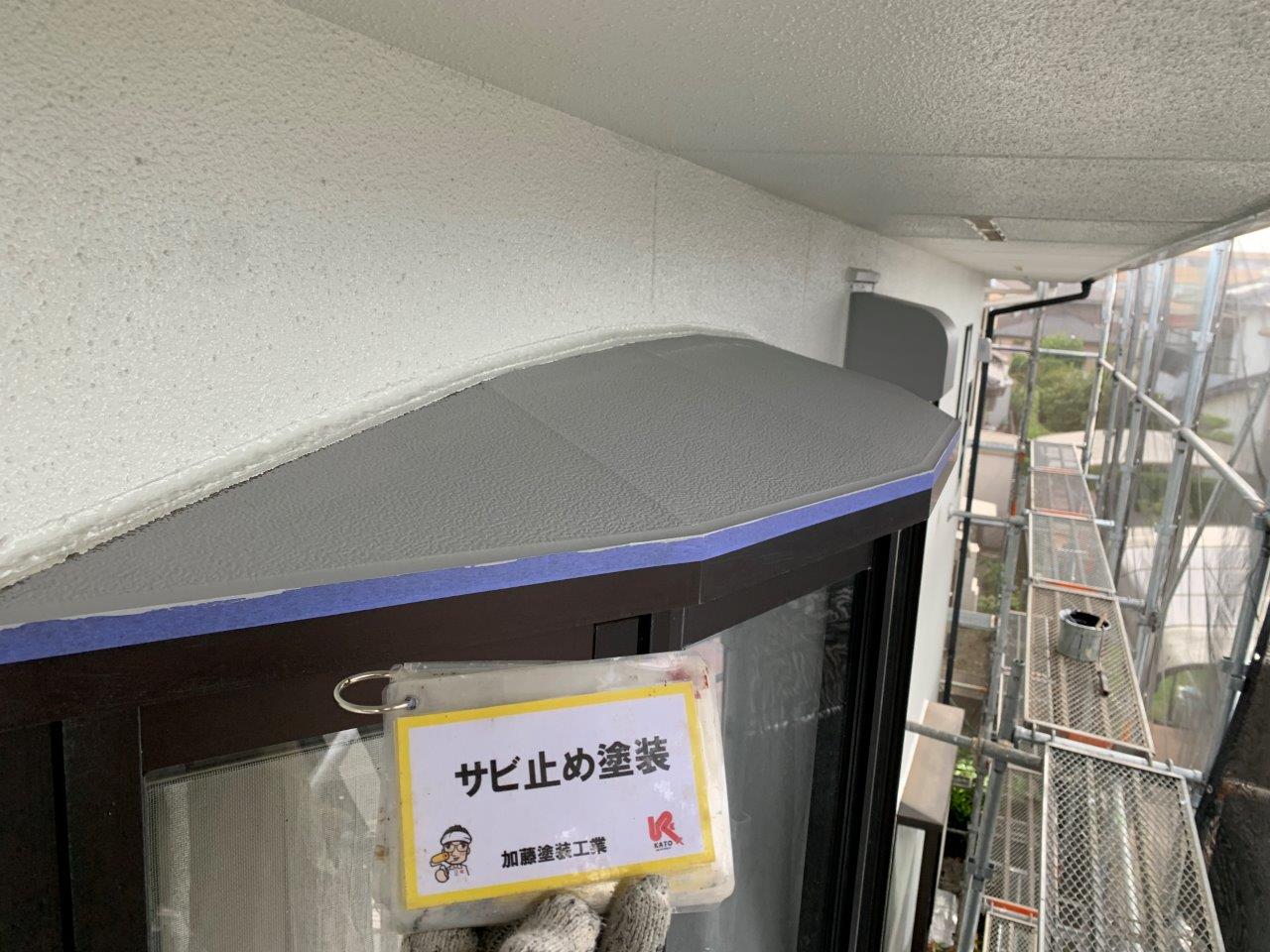 M様邸外壁塗装 中塗り 上塗り サビ止め塗装