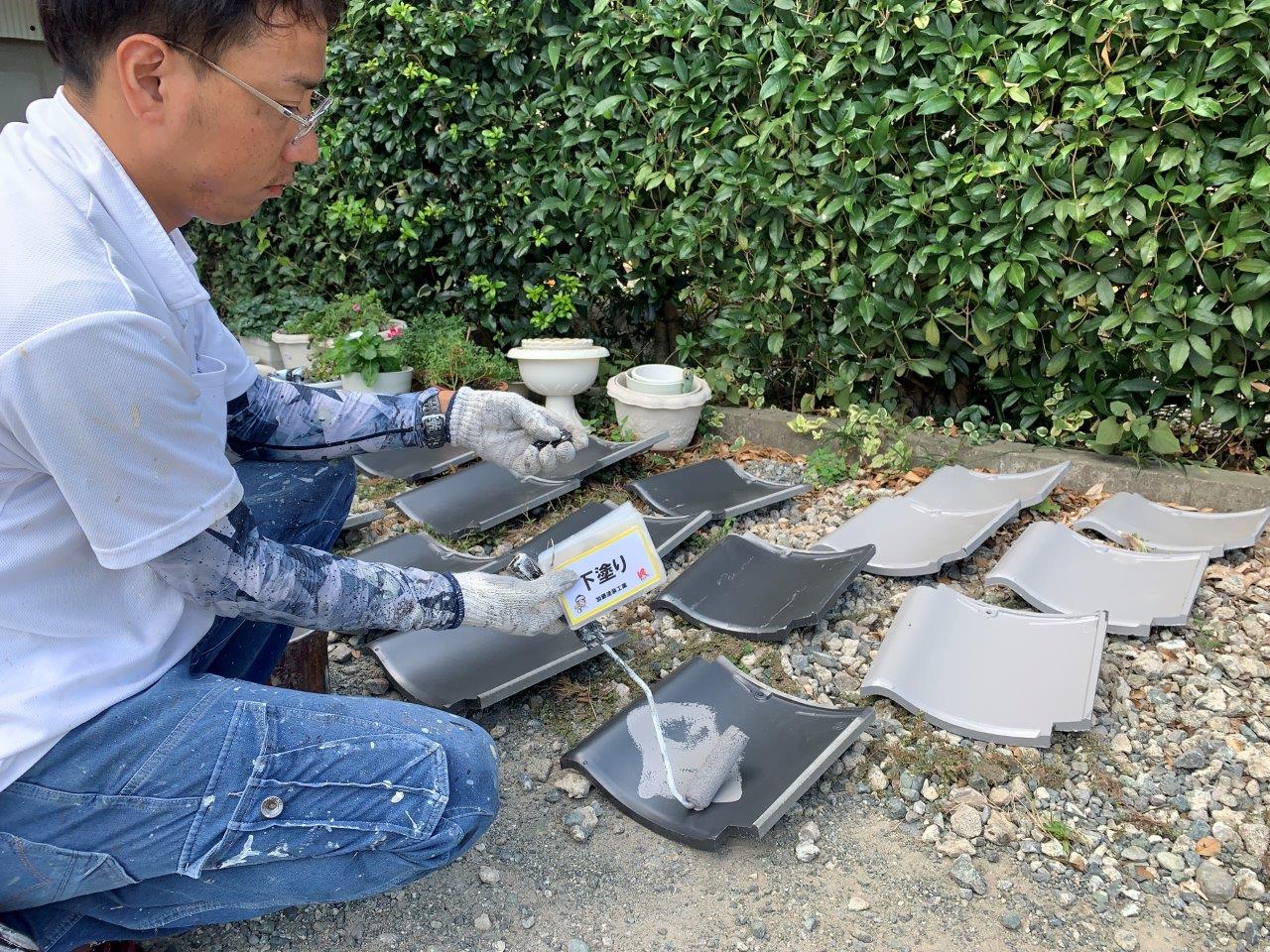 予備瓦は焼付瓦なので、専用のプライマーで塗装しました。
