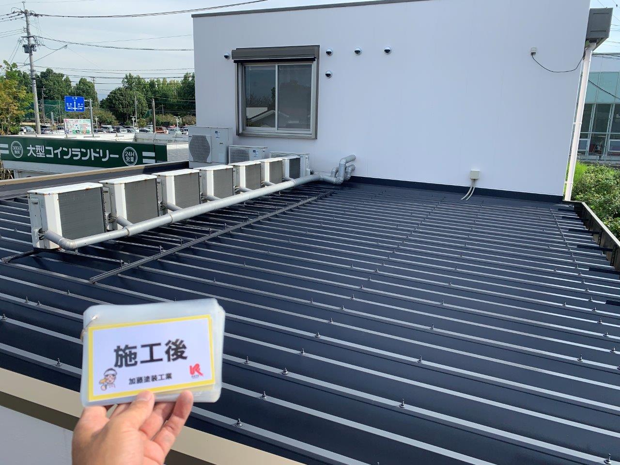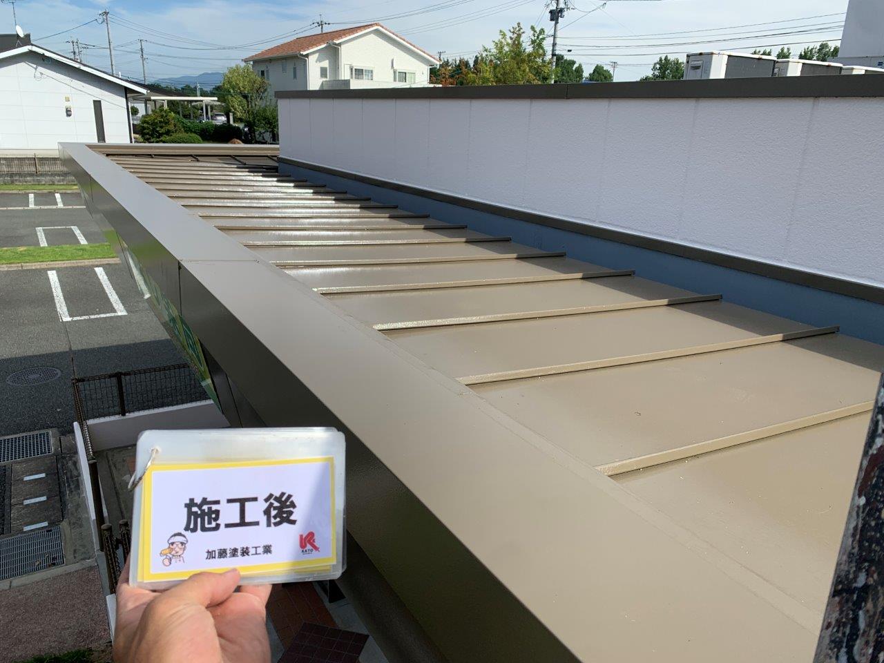 屋根外壁ともに無機フッ素で仕上げました。パラペットや鉄部もそうです。最高品質の塗料で仕上げました。