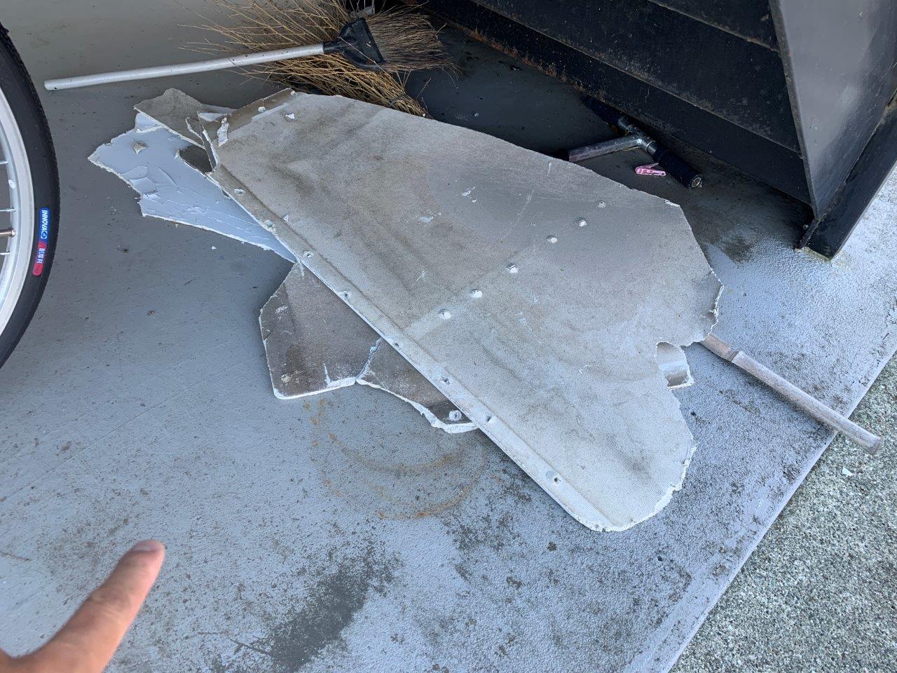 天井から剝がれて落ちた、ケイカル板です。
