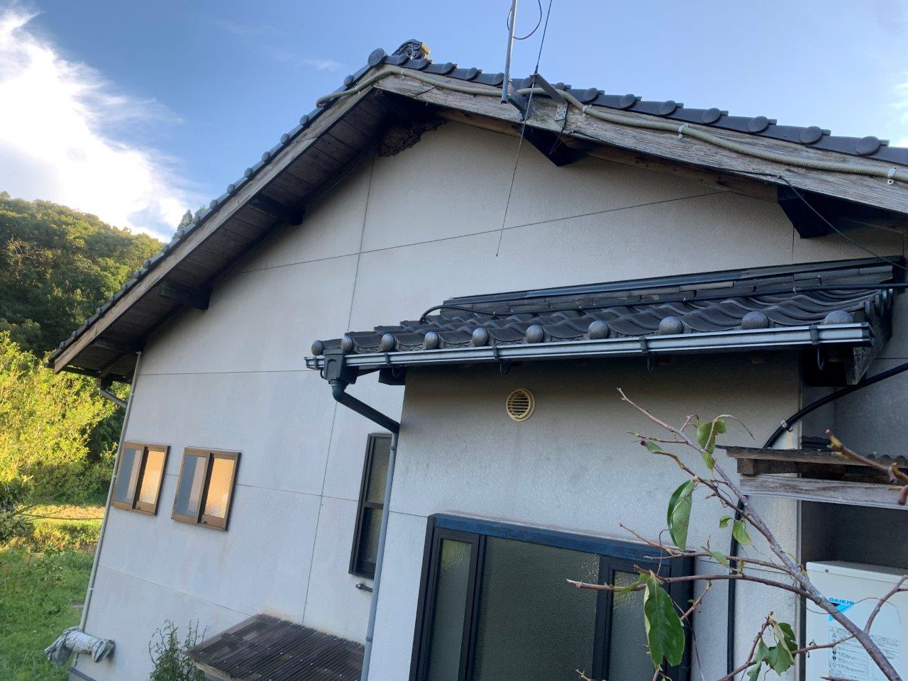 屋根瓦は強風ですべりおちておりました。