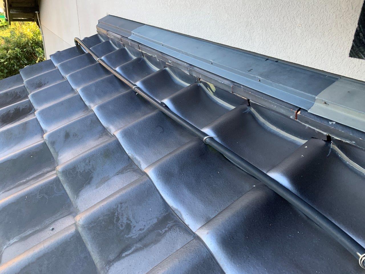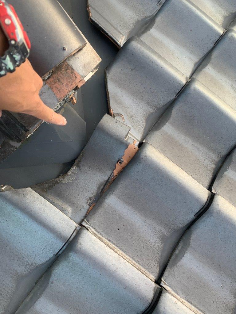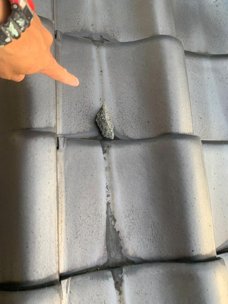 間一髪ですねここの下には駐車場で車が停車しています。仮に人にあたったと考えただけでもゾッとしますね。瓦止めのコーキングも弊社ではいたしますのでお気軽にお問い合わせください。