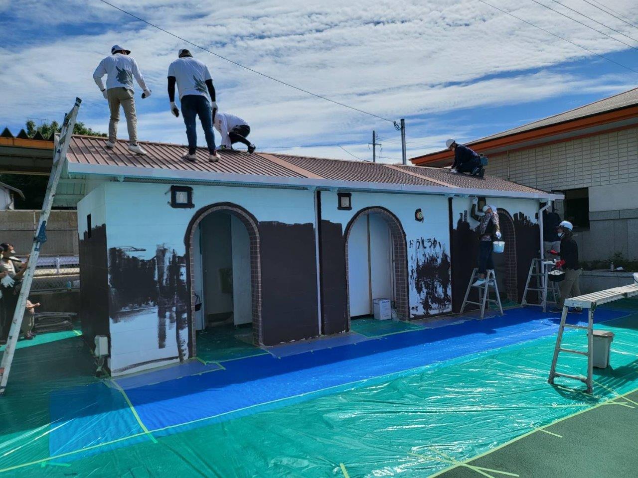 みんなで塗装すると楽しいです。地域の方々の笑顔や子供たちにも喜んでもらって、塗装の楽しさを体験してもらって自分自身もうれしくなりました。人の役に立つっていいですねー!