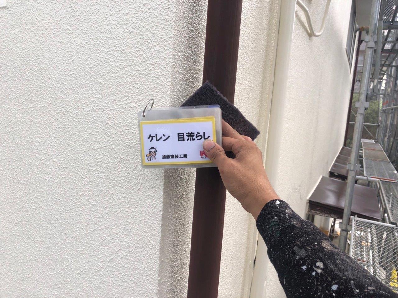 雨どい塗装ケレン状況です。 塗料のついつきをよくする目的があります。