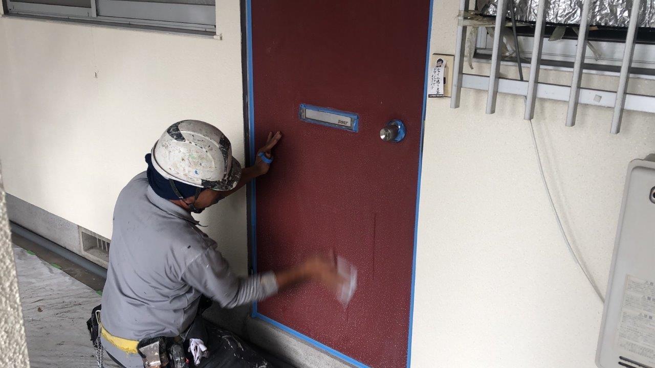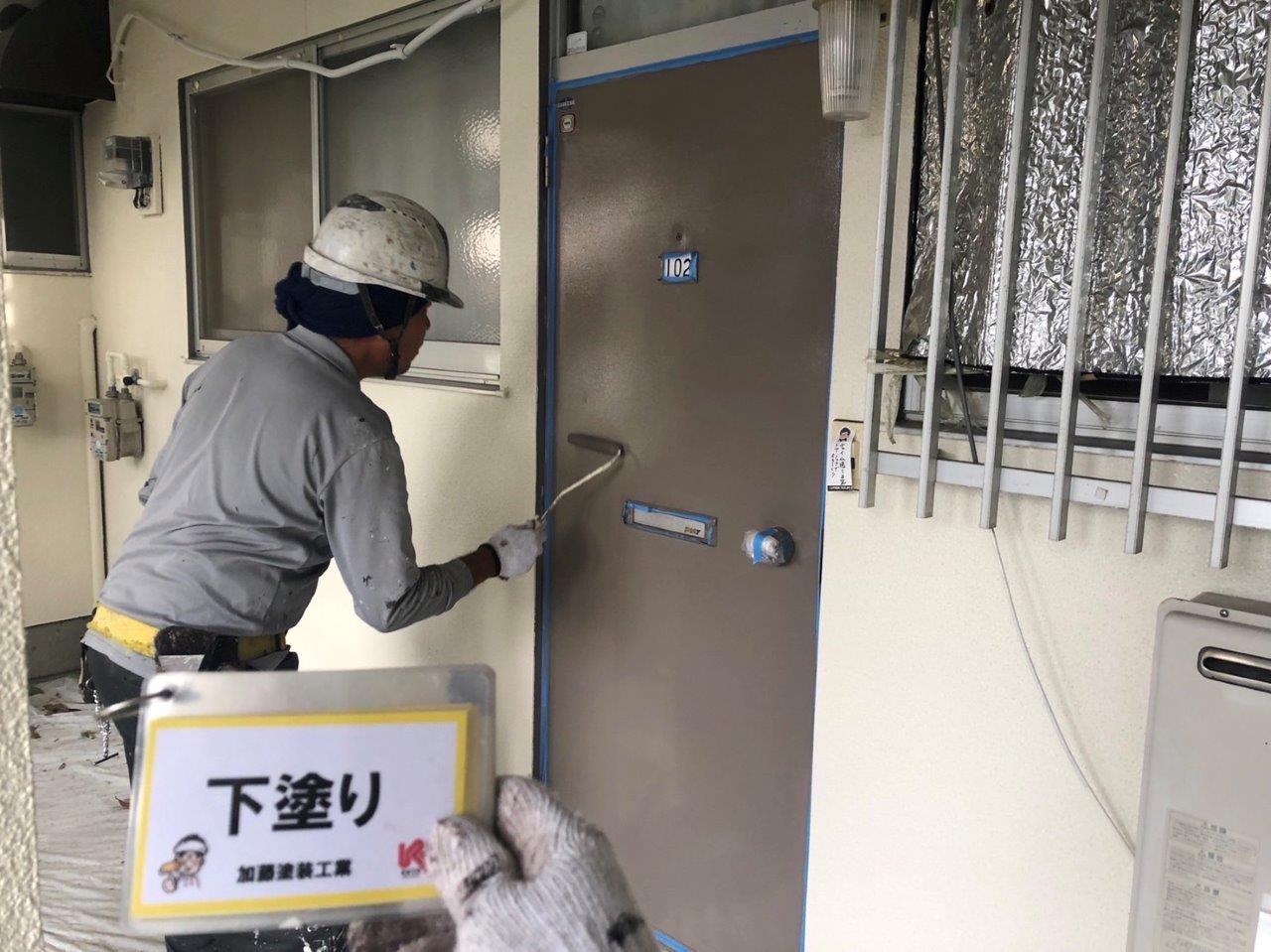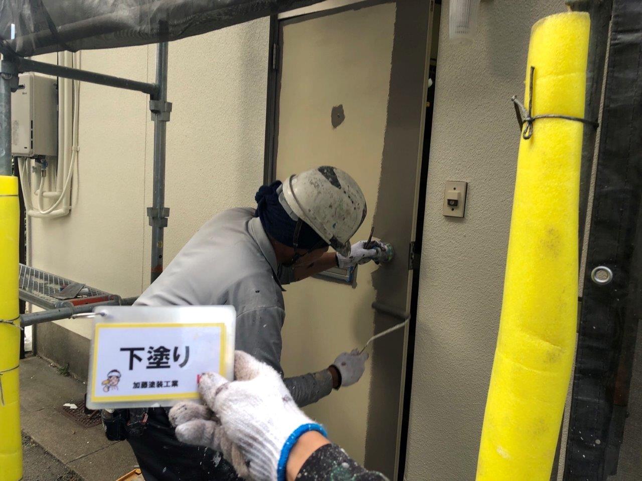 扉塗装 下塗り状況です。