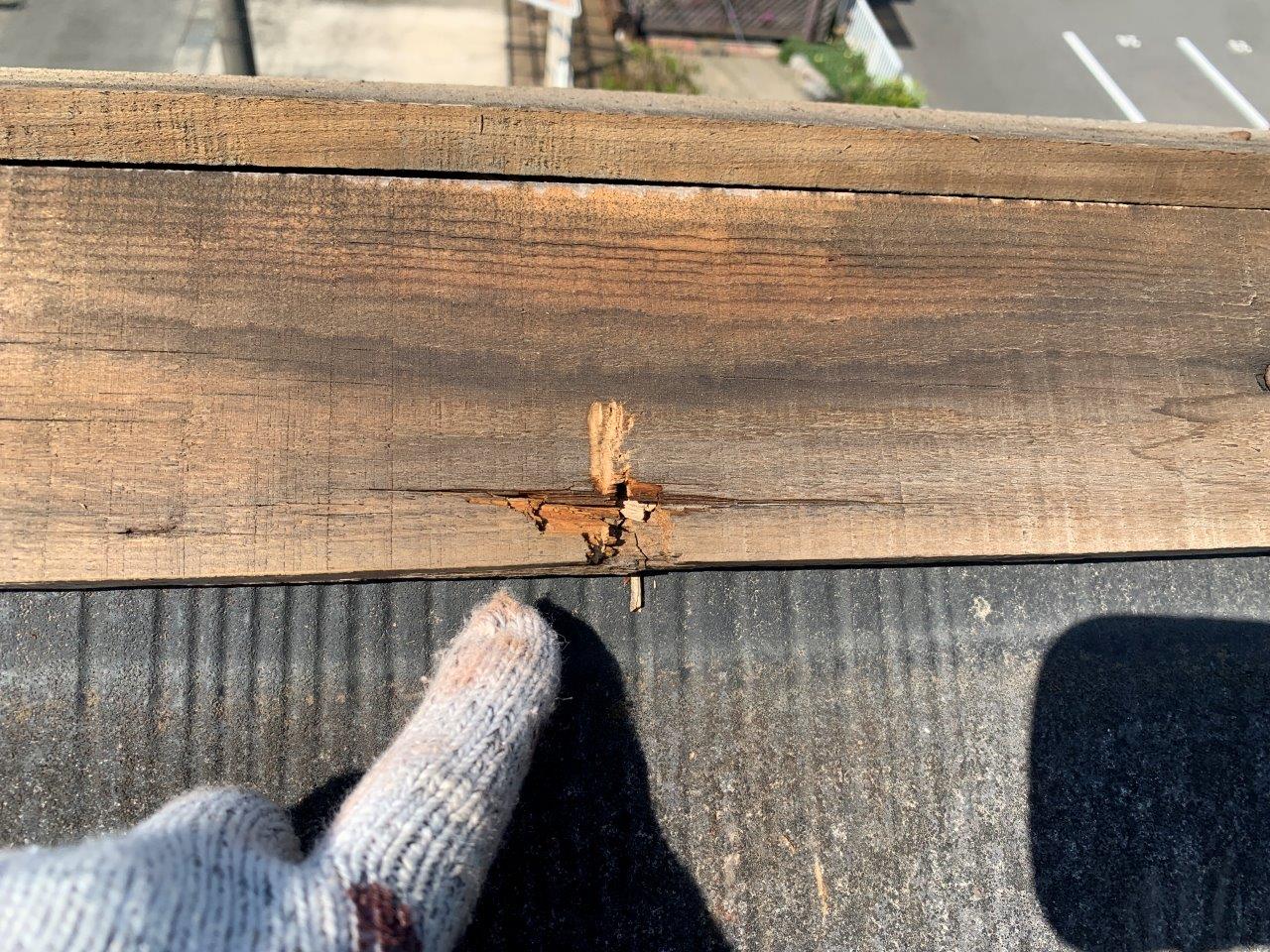 釘がささっていた箇所ですが風の影響でこのような状態になっています。
