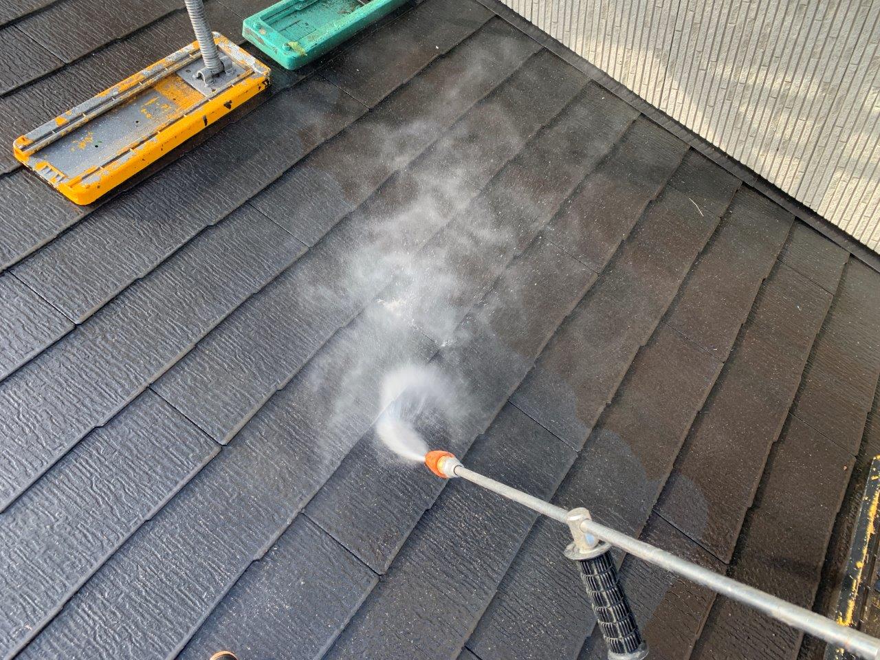 ターボガンで屋根は洗浄します。