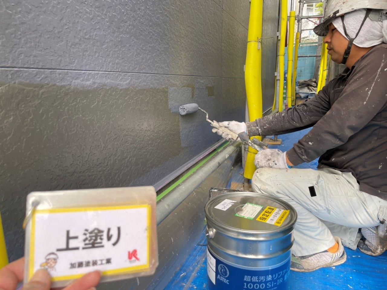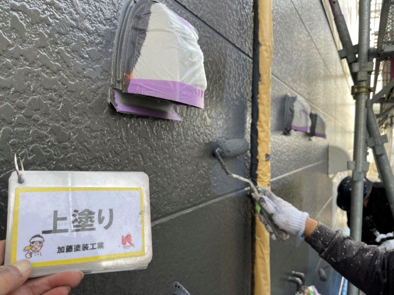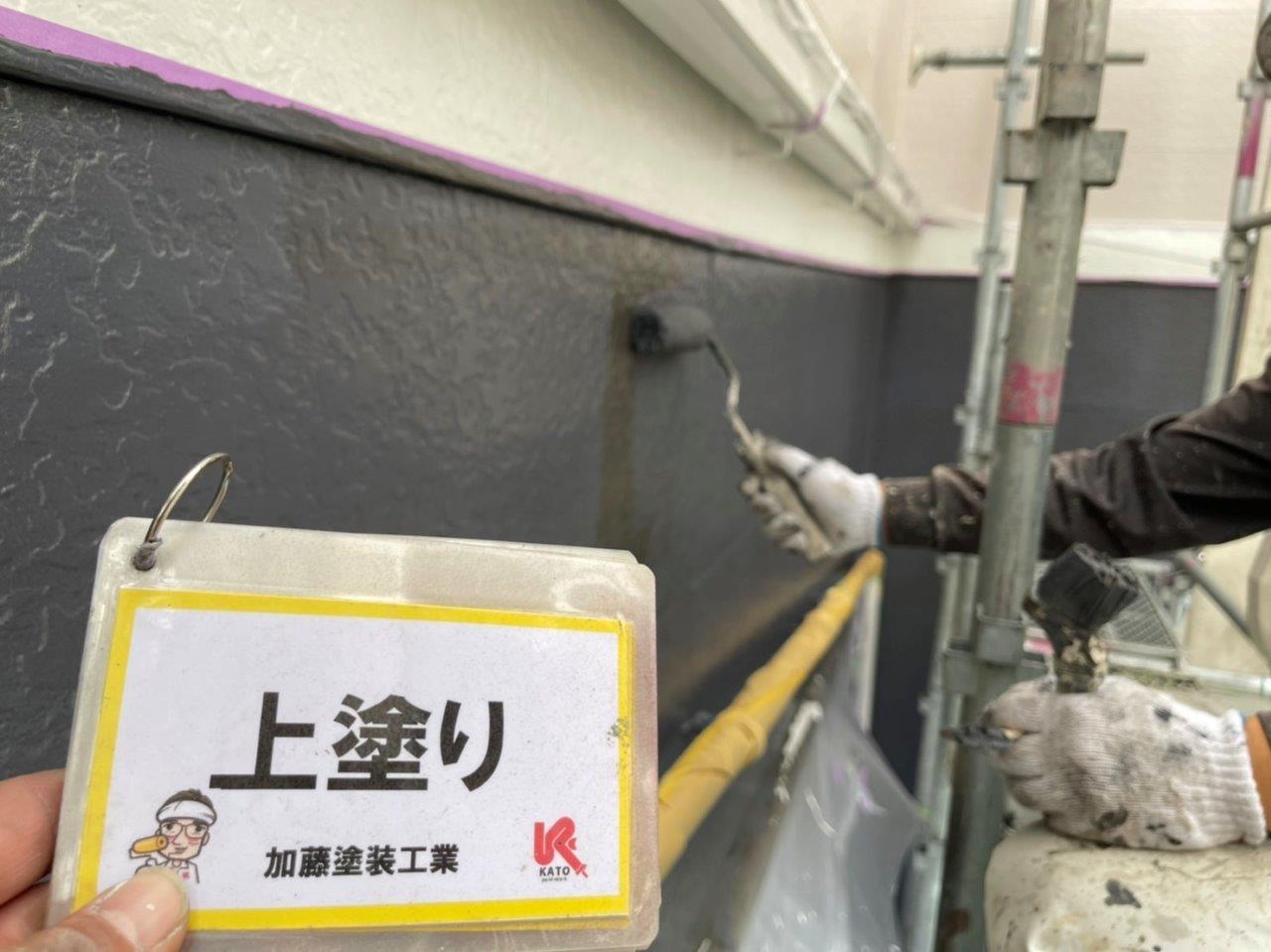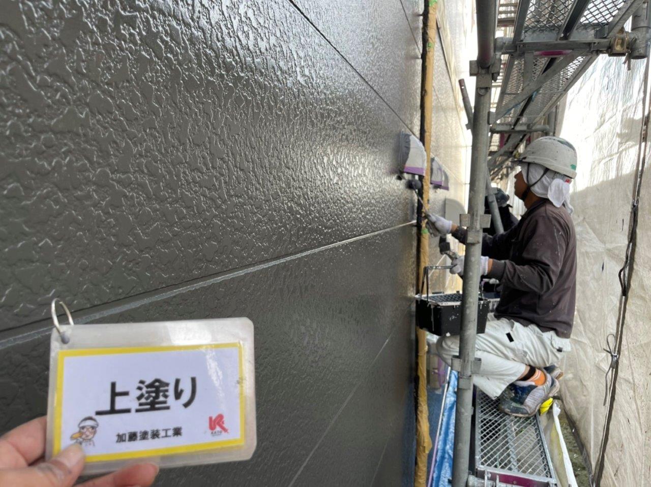 熊本市アパート外壁塗装 上塗り状況です。