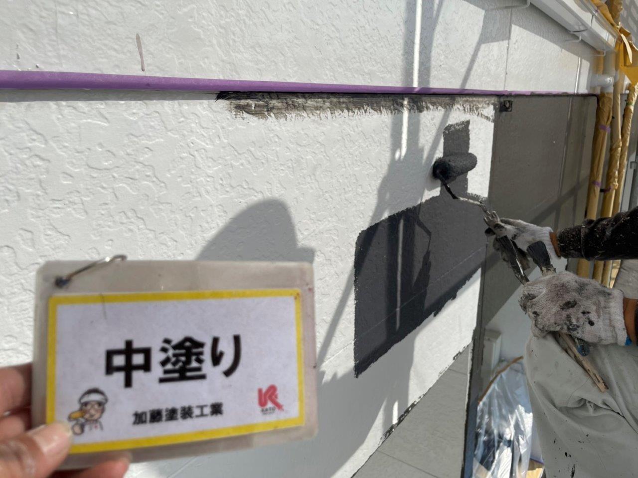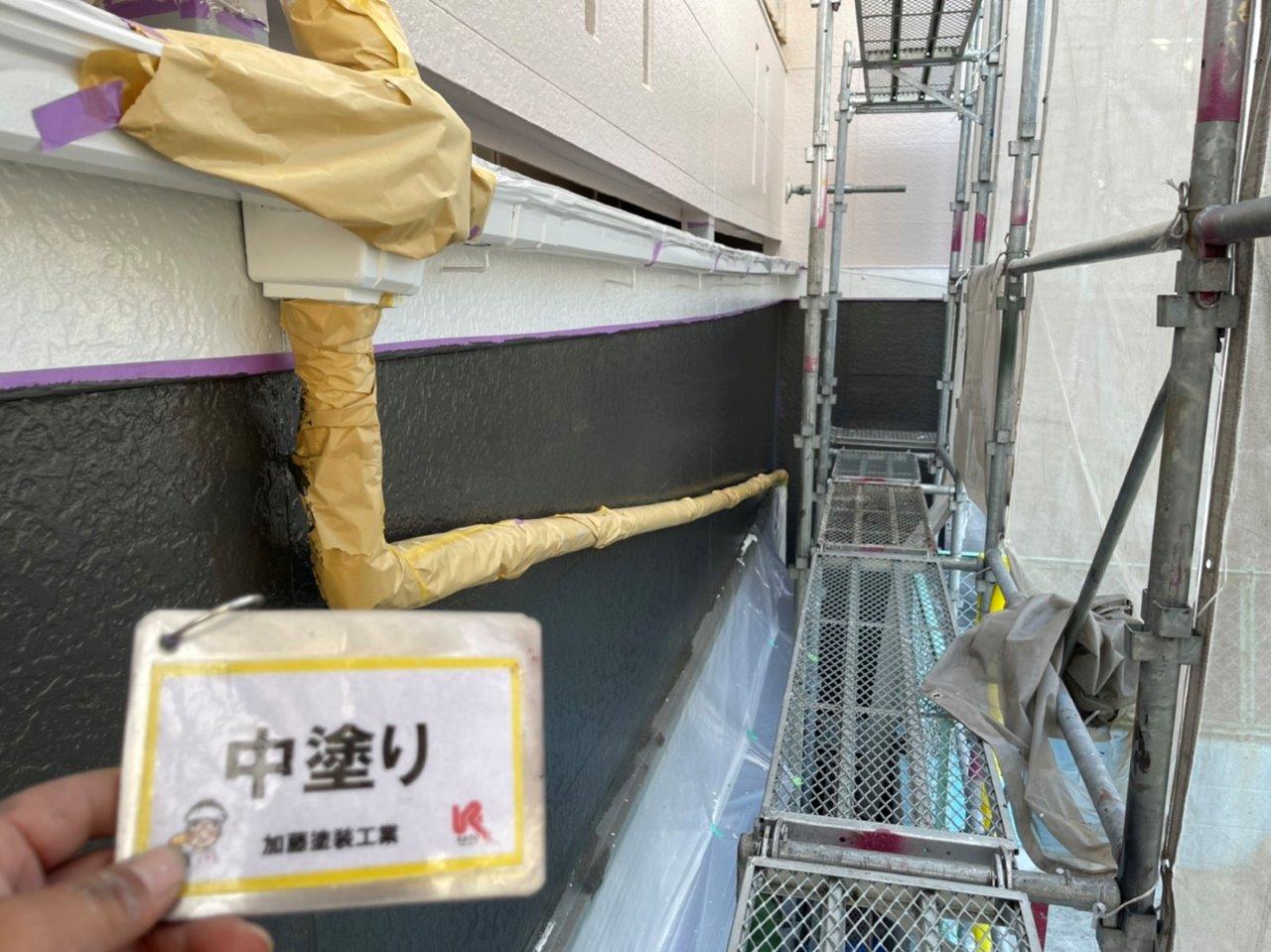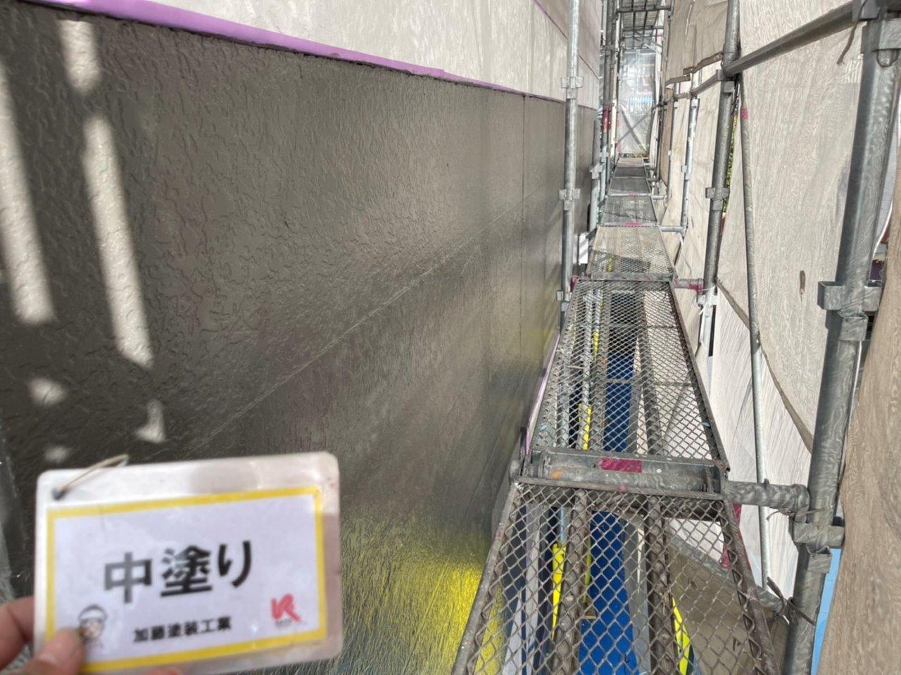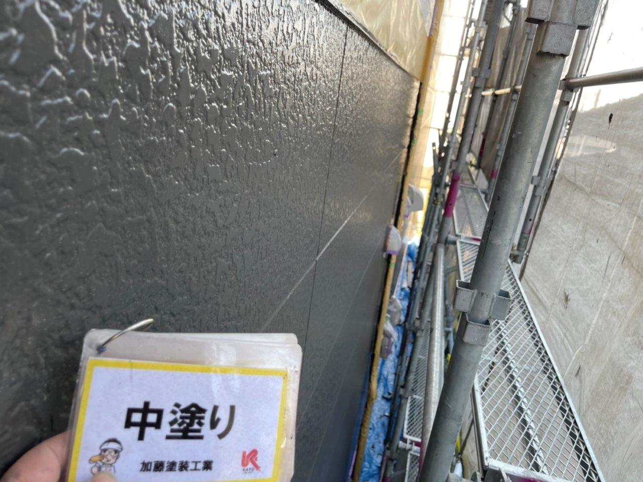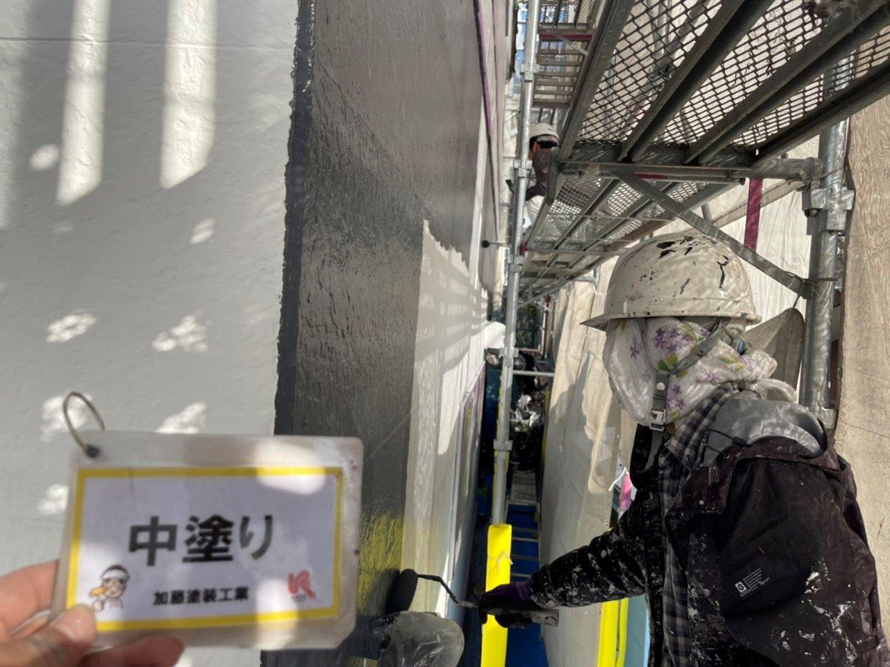 熊本市アパート外壁塗装 上塗り状況です。