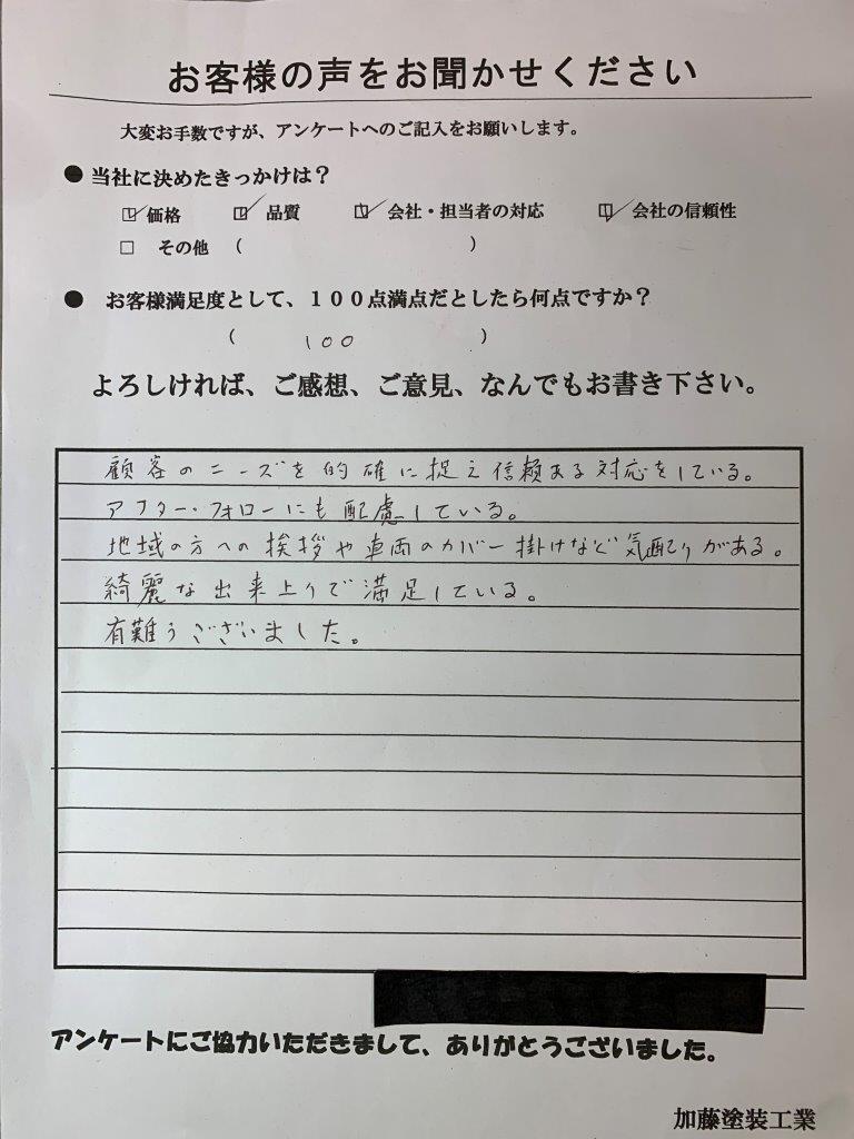 アフターフォローにも配慮している、綺麗な出来上がりで満足している。