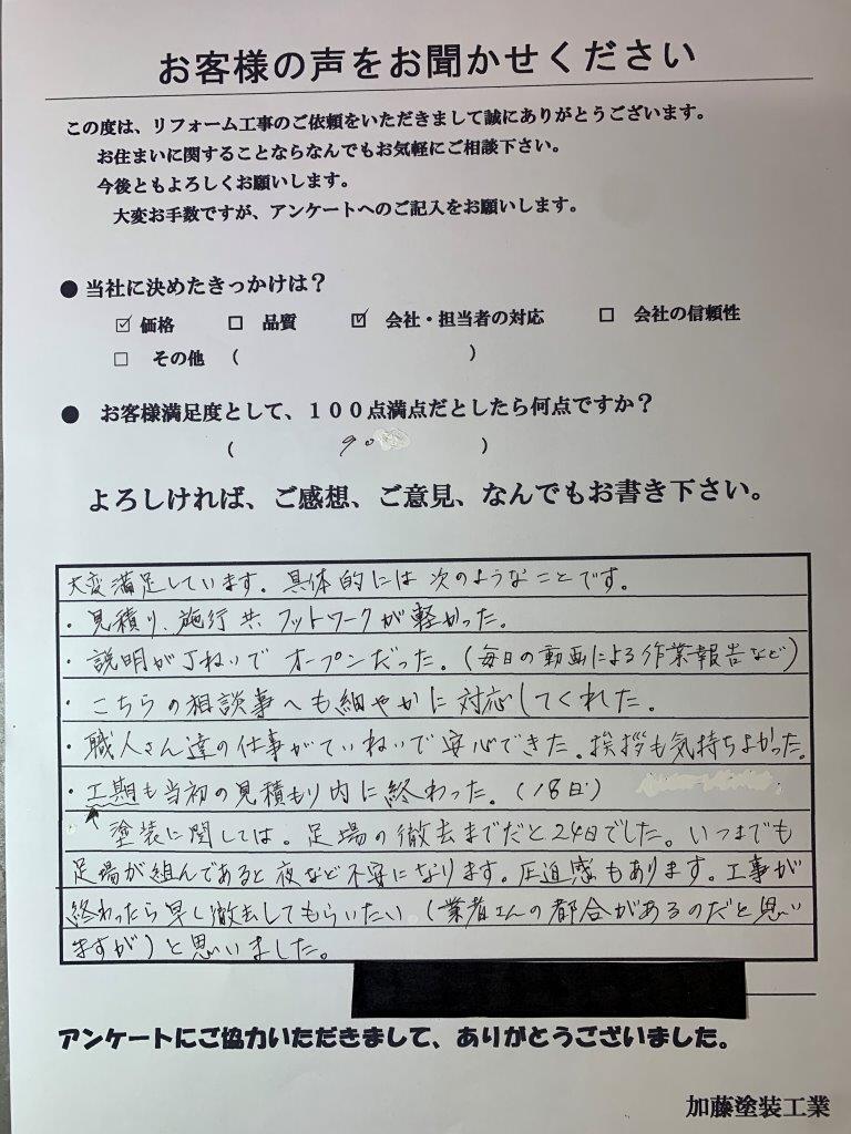 説明がていねいでオープンだった。職人さんたちの仕事がていねいで安心できた、挨拶も気持ちよかった