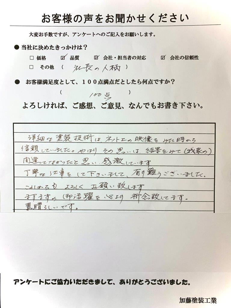 丁寧な仕事をして下さいまして、有り難うございました。